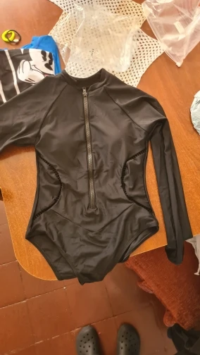 La verdad es que me imaginaba que fuera de mejor calidad, no está mal la tela pero no es la tradicional de los trajes de baño. Por el frente tiene doble capa y almohadillas, de la parte de atrás sólo una capa. Respecto a las medidas, lo sentí un poco amplio de los brazos y la cintura. Sí buscas protegerte del sol es una buena opción, aunque sí da mucho calor. Llegó súper rápido, como en 2-3 semanas.