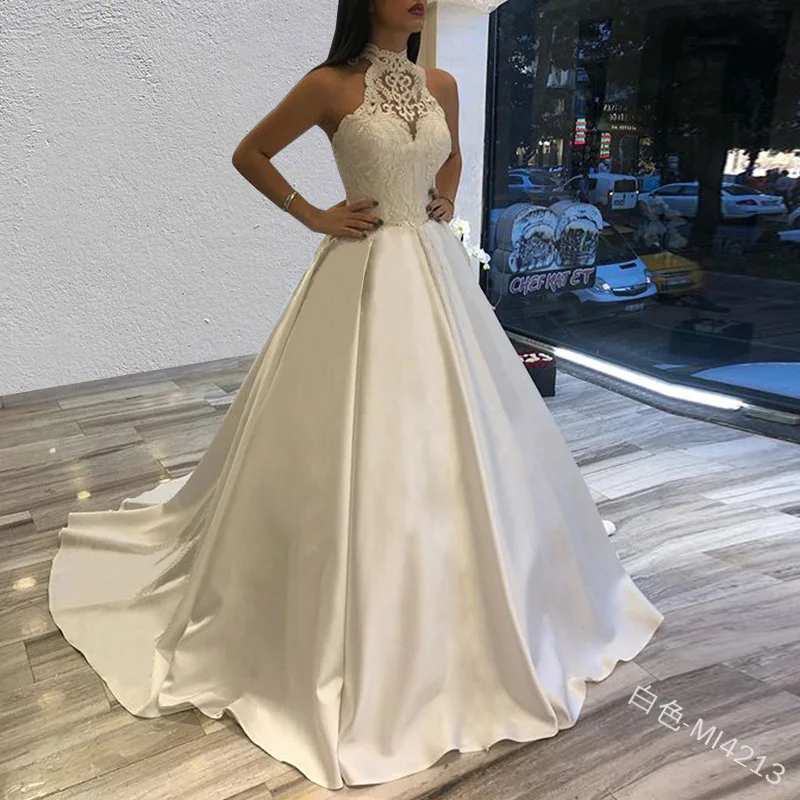 Свадебное платье цвета слоновой кости, с аппликацией на шее