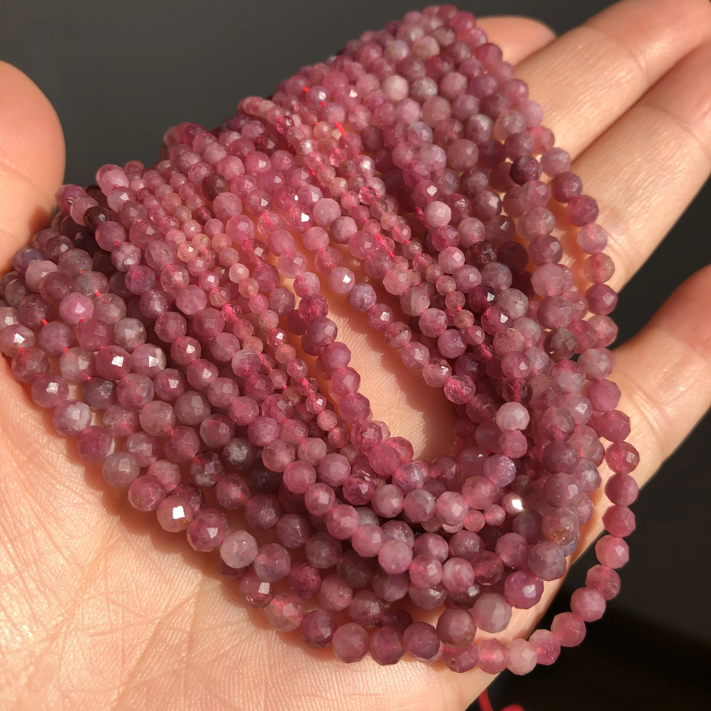 Бусина из натурального турмалина с гранями, круглые бусины с отверстием россыпью для изготовления ювелирных изделий сделай сам, браслетов, ожерелий, аксессуаров, 2, 3, 4 мм