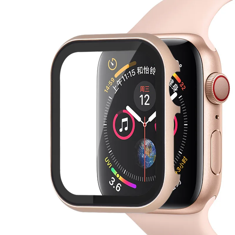 Стекло + рамка алюминиевый чехол для Apple Watch 5 4 44 мм 40 мм iwatch 3 band 42 мм 38 мм металлический бампер универсальная защитная рамка для экрана