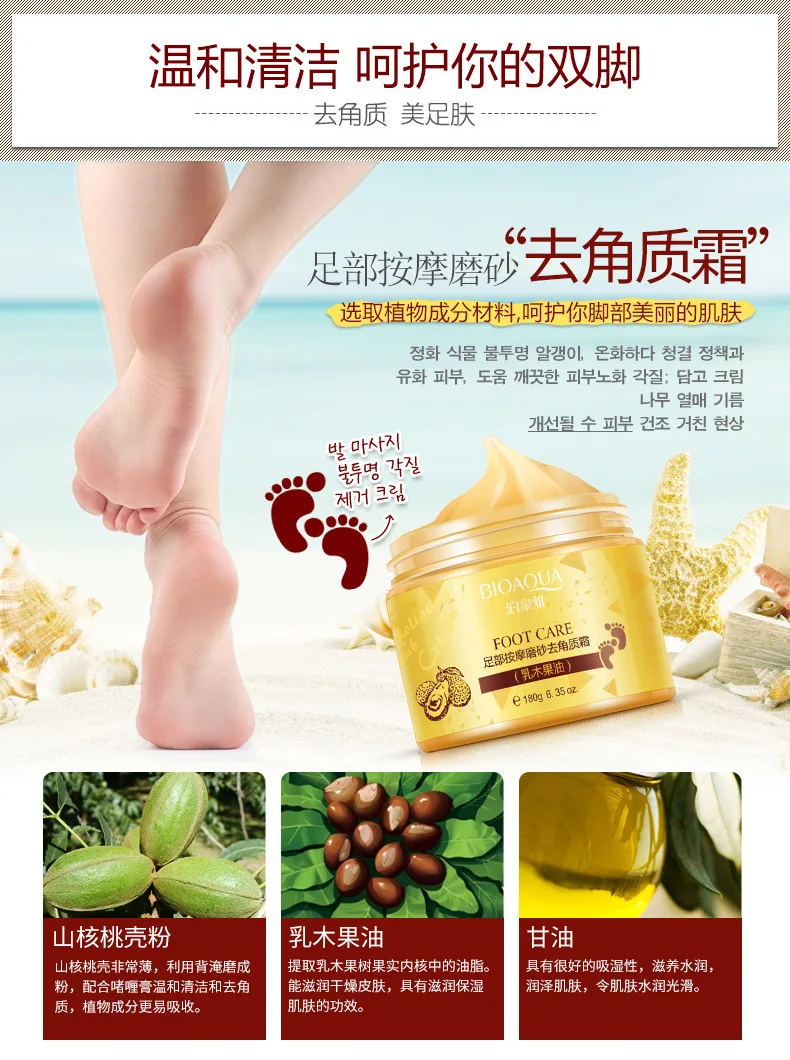 BIOAQUA питательные увлажняющие 180gHot массаж ног скраб отшелушивающий крем Ремонт огрубевшей кожи отбеливание плавное увлажнение крем для лица против морщин и крем для ухода за ногами