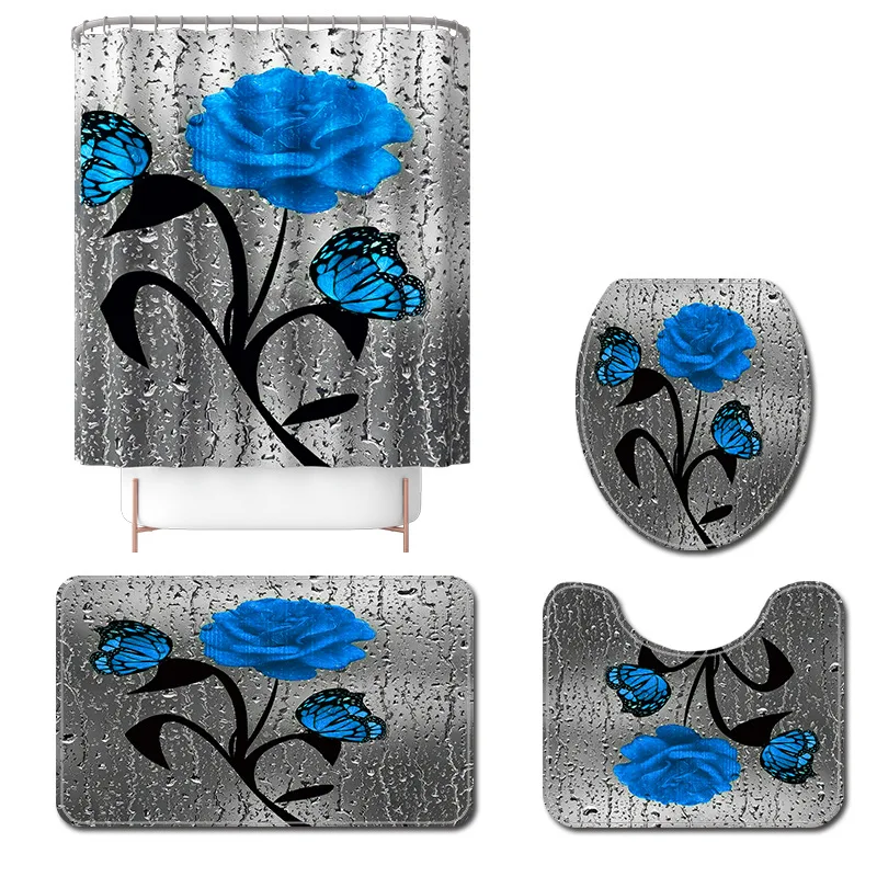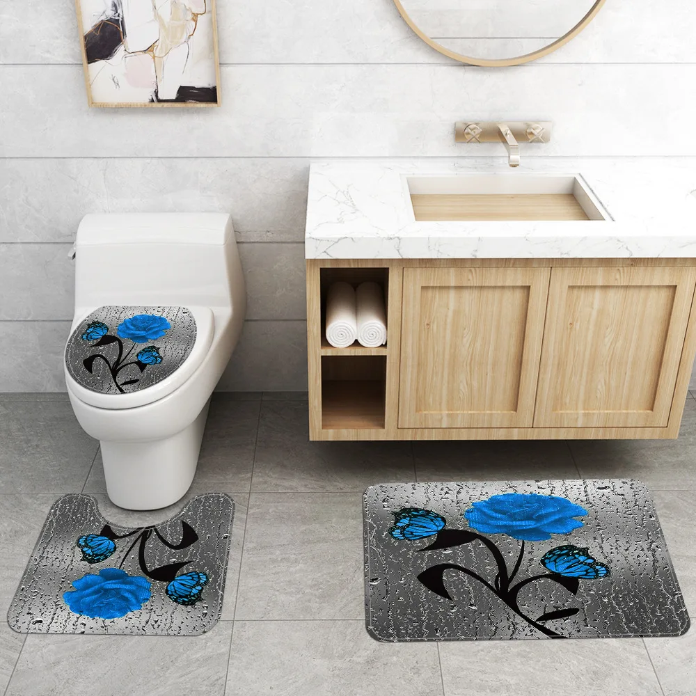 Горячая розы и лотоса тема Ванная комната комплект с Водонепроницаемый душ Шторы и ковры крышка для унитаза крышка и пол ванной комнаты коврик