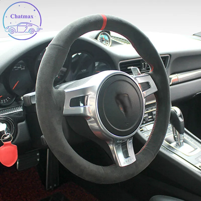 Вышивка Alcantara чехол рулевого колеса автомобиля для Porsche 911 2000-2013 2016 2017 2018 2019 2020 Ручное шитье держатель изготовленный на заказ Обёрточная бумага