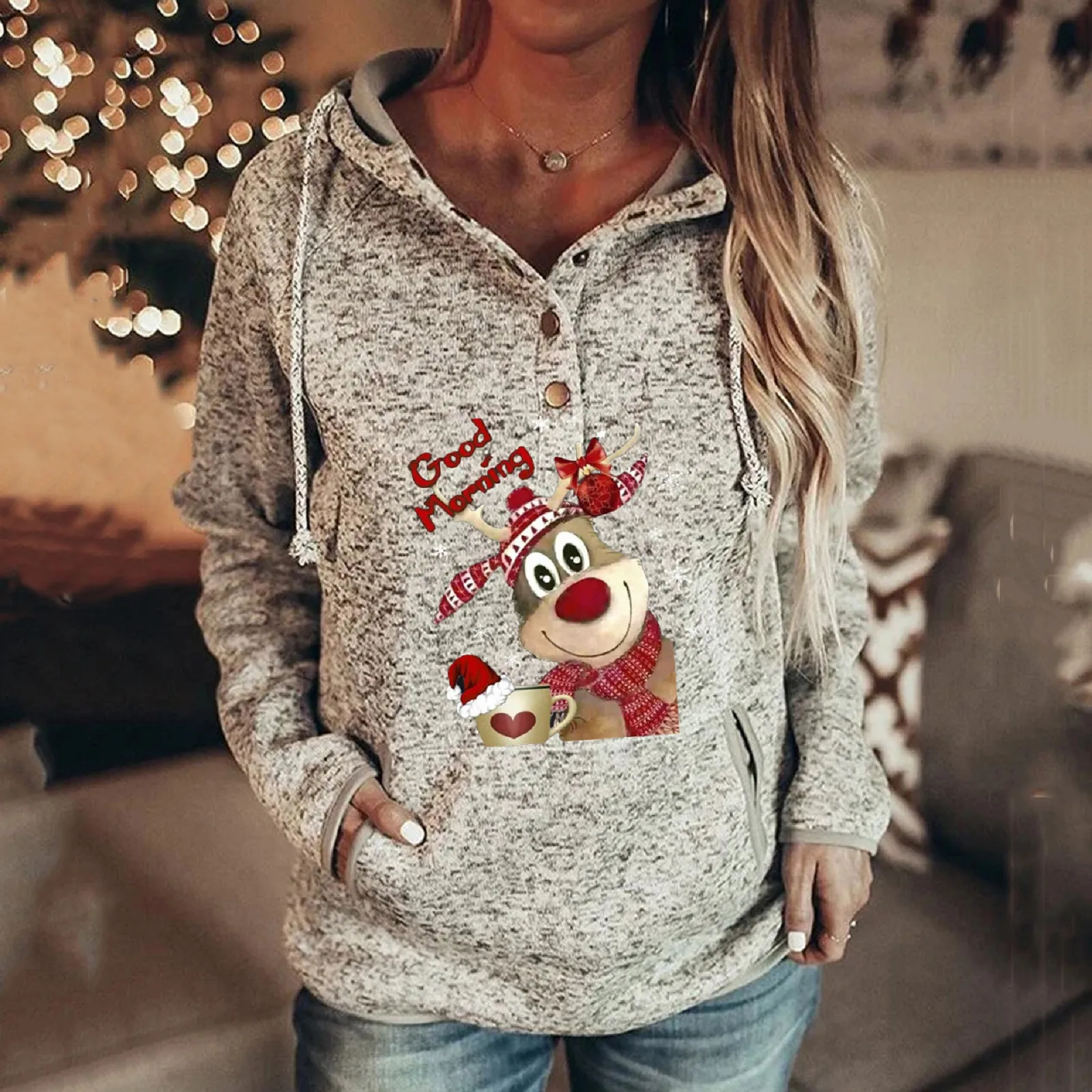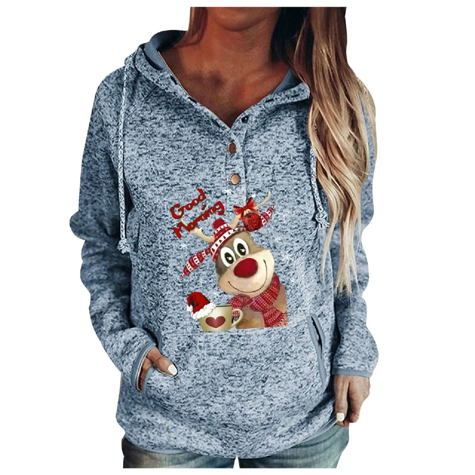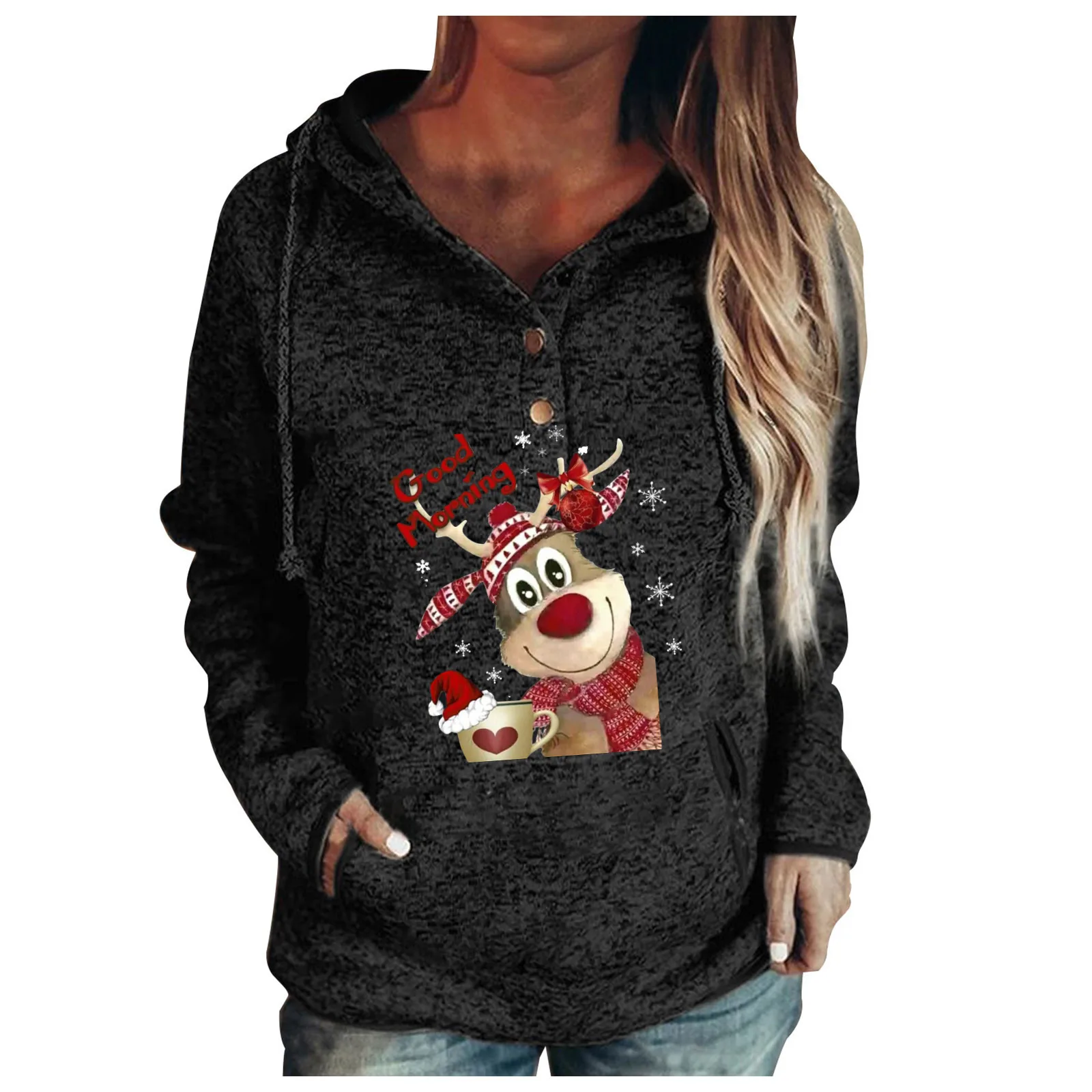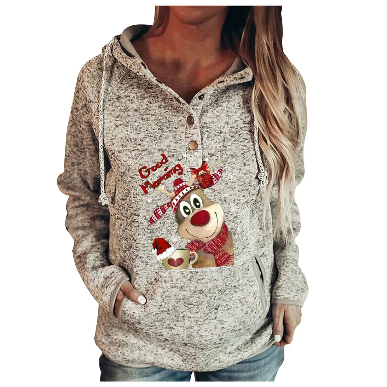 4 # зимние принт лося женские рождественские свитера с длинными рукавами, пуговицами, воротником и карманами, регулируемые пуловеры на завязках