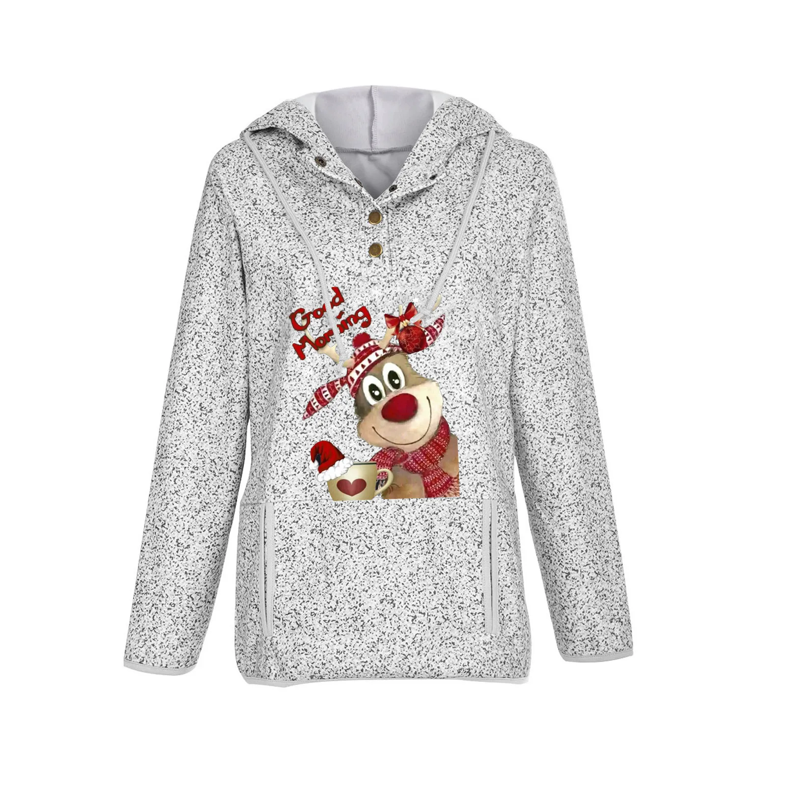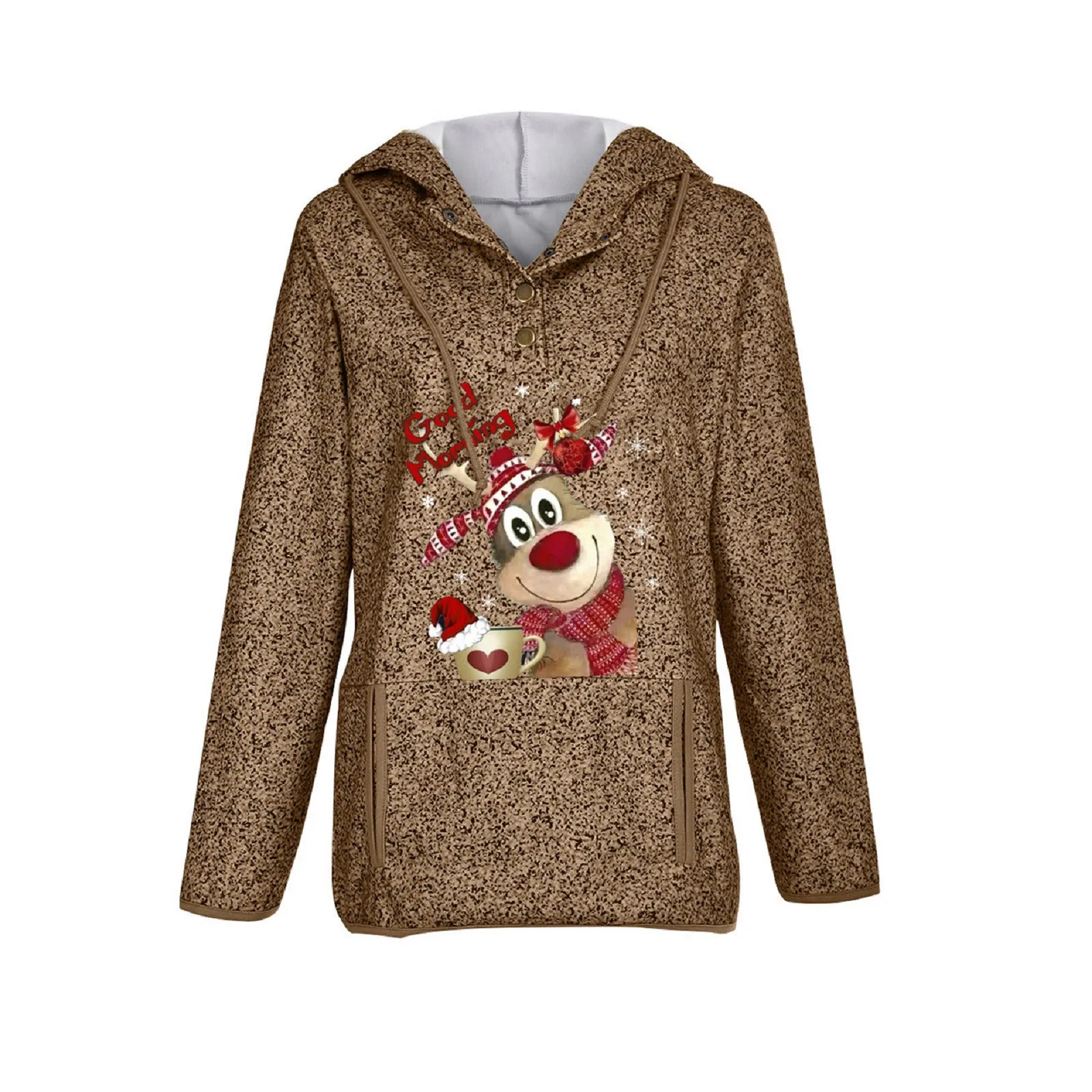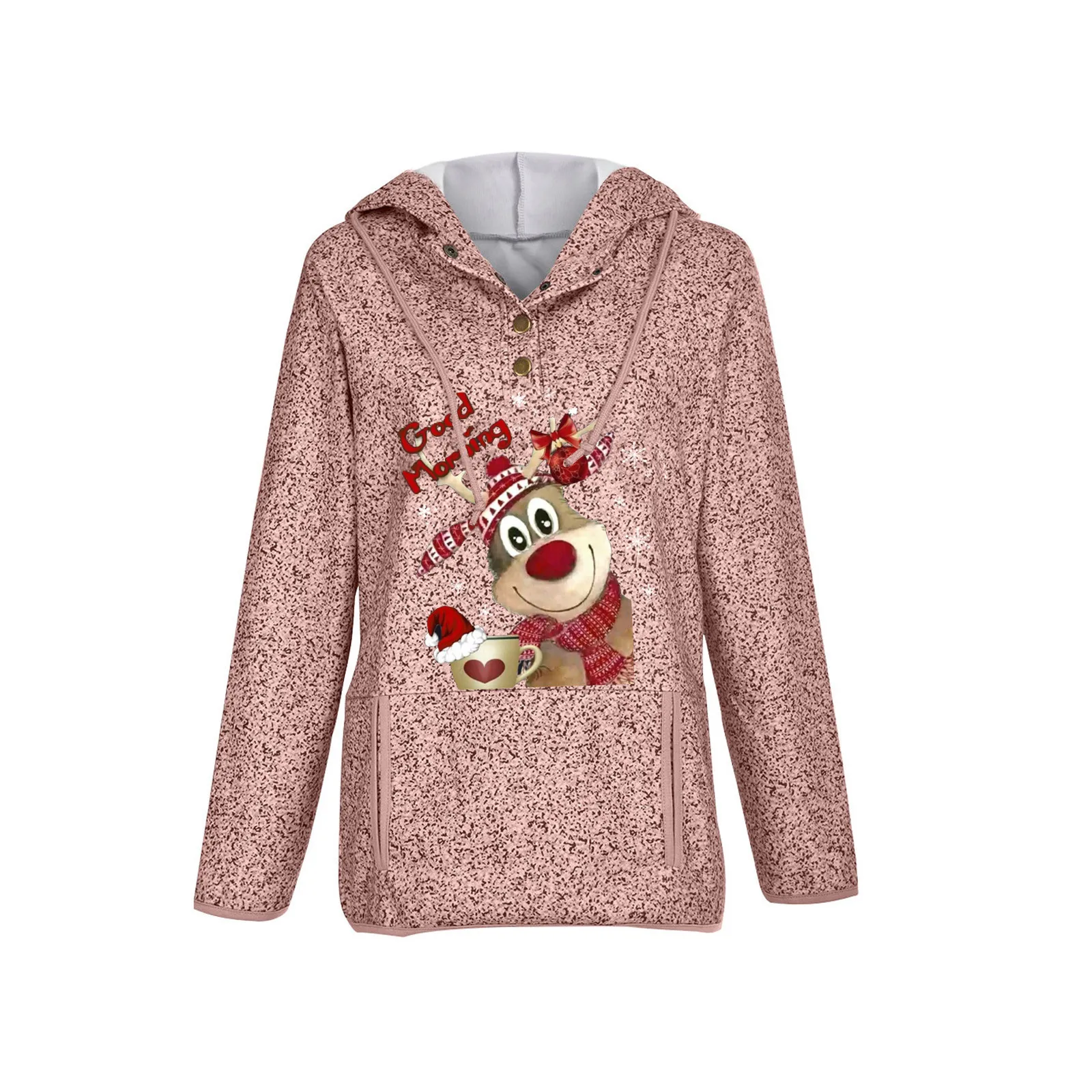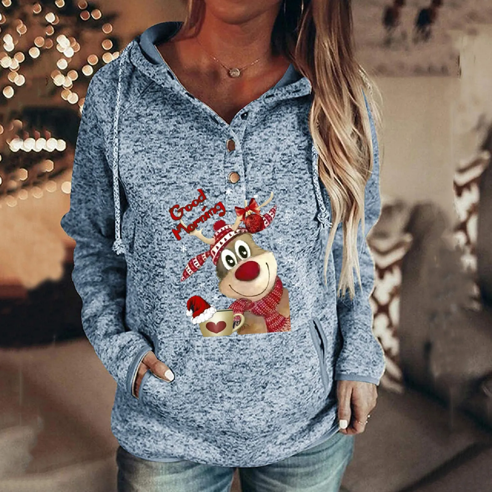 4 # зимние принт лося женские рождественские свитера с длинными рукавами, пуговицами, воротником и карманами, регулируемые пуловеры на завязках