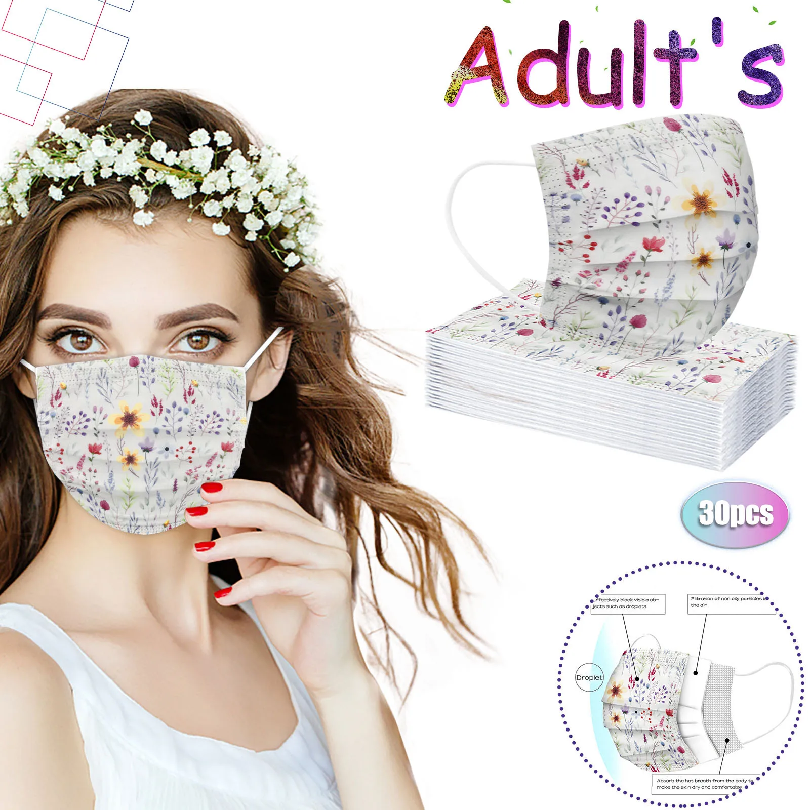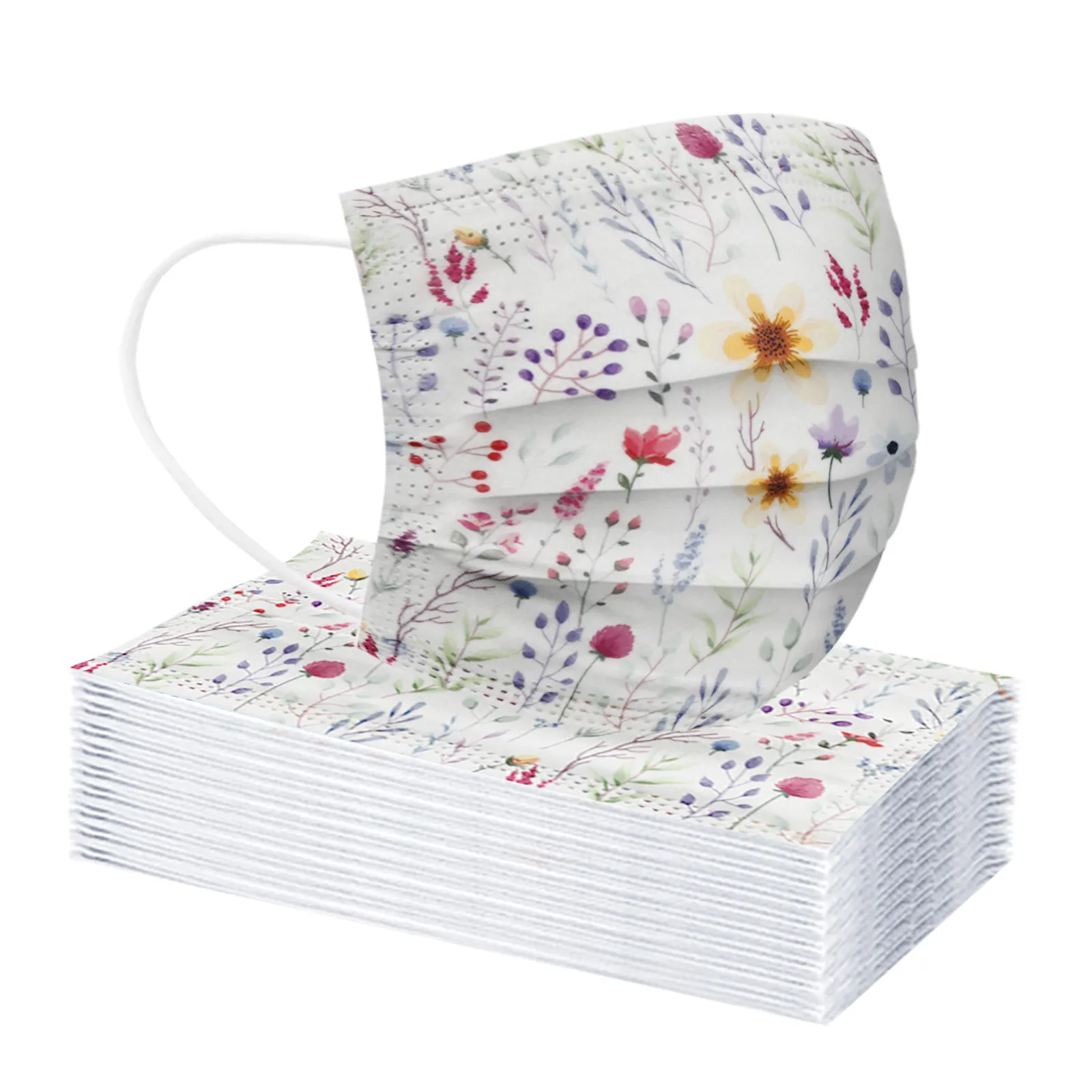 Маска для лица одноразовая из нетканого материала с цветочным принтом, 3 слоя, 1020304050100 шт.