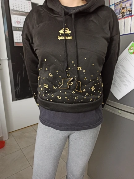 Свитшот короче, чем на картинке, поэтому при шитье могут быть дефекты