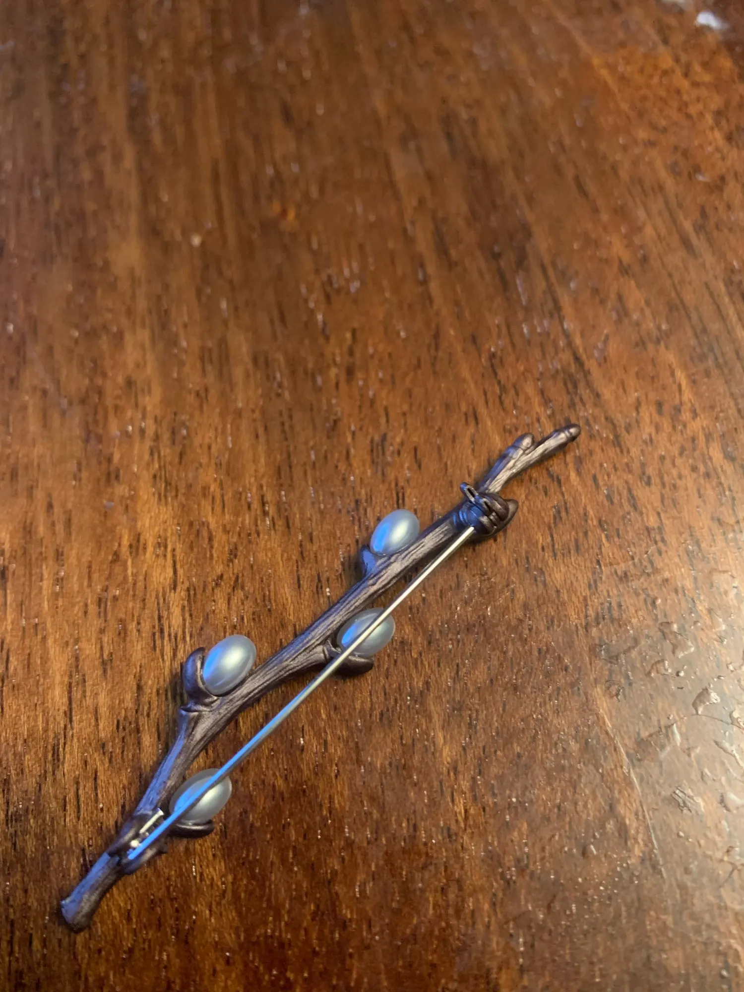 На фото кажется, что жемчужинки больше, чем есть на самом деле. Застежка не очень понравилась. Но брошь все равно смотрится очень оригинально. Спасибо)
