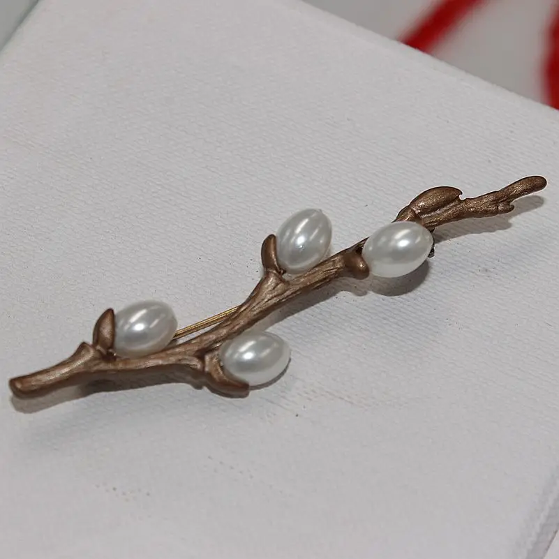 Винтажная брошь в виде цветка сливы, ветки, булавки, элегантный букет, свадебные украшения для невесты, ручная работа; Пресноводный жемчуг