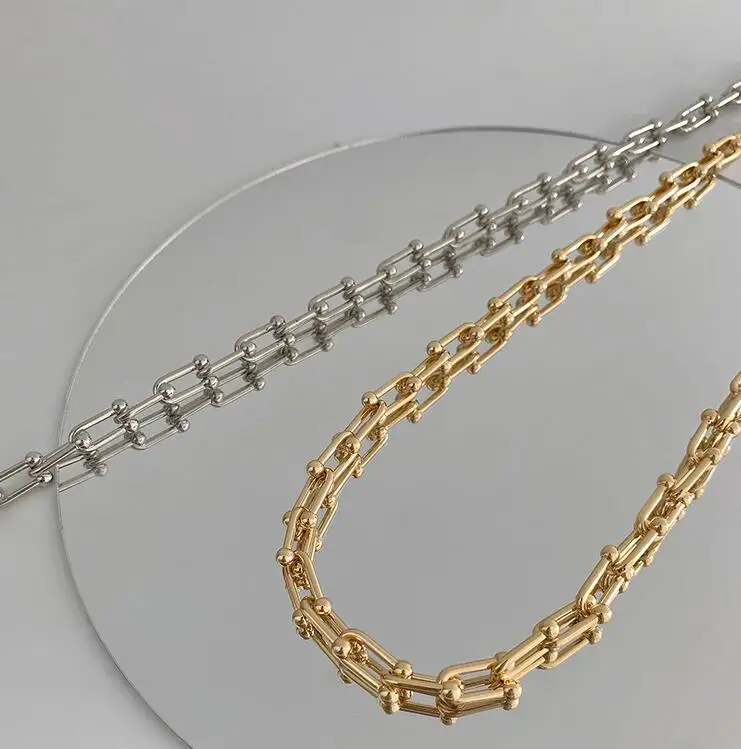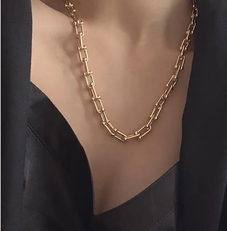 Amaiyllis 18k золото минималистский U-образный шов толстая цепь ожерелье Личность увеличенное ожерелье для женщин ювелирные изделия подарок
