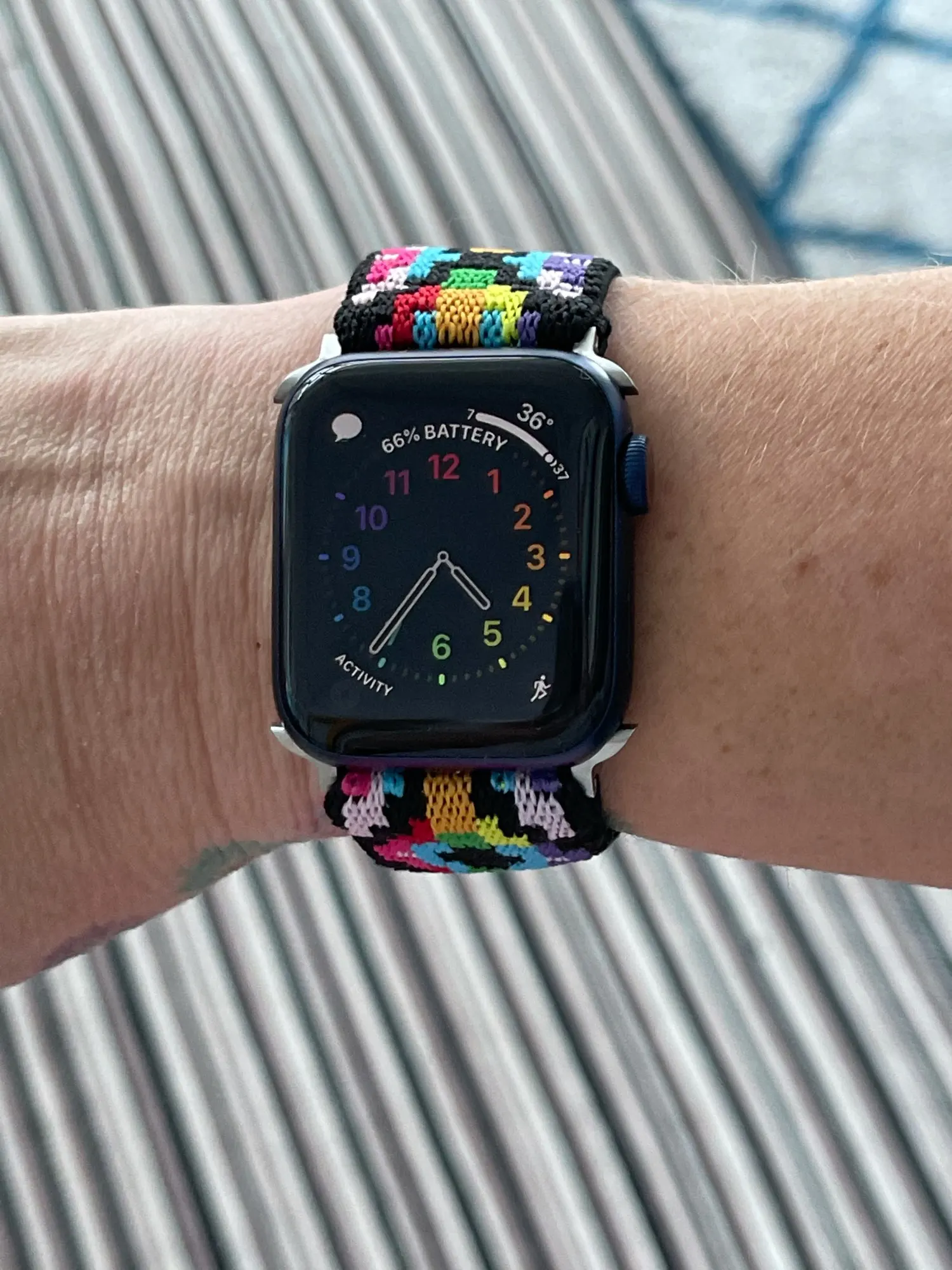 Ремешок для apple watch, ремешок 40 мм, 44 мм, ремешок iwatch 42 мм, 38 мм, эластичный браслет для девушек и женщин, apple watch series 5, 4, 3, 2, 38 Материал: хлопок, полиэстер, нержавеющая сталь. Свободная длина ремешка для часов составляет около 15,3 см, что немного свободнее, если у вас меньшее запястье. Новый дизайн: эта резинка для волос-идеальный аксессуар для ваших часов, брелка или галстука для волос. Толстая резинка идеально подходит для вашего размера запястья, есть также множество классических принтов на ваш выбор. Совместимые модели: совместимы с Apple Watch 38 мм/40 мм/42 мм/44 мм. Персонализируйте свои часы с помощью этого изысканного сменного браслета (Обратите внимание: без часов!) Простая установка: эластичный ремешок Apple watch имеет двойную кнопку со складной застежкой с обеих сторон. Поставляется с изысканными стальными соединителями, которые легко снимать и устанавливать, точно и надежно фиксируют ваши часы. Посылка входит: 1 ремешок для часов (часы apple не входят в комплект)