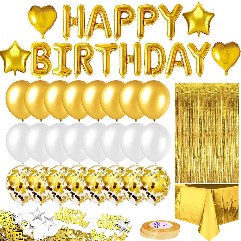 Золотой День Рождения вечерние украшения с днем рождения баннер воздушные шары бахрома занавеска фольга скатерть Сердце Звезда конфетти из фольги Воздушные шары и 10 г Таблица Конфетти для мужчин женщин вечерние на день рождения