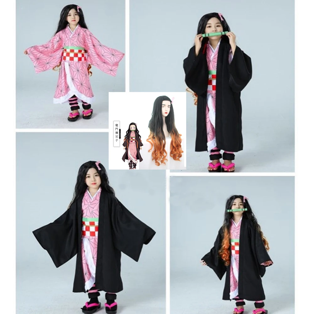 Детский костюм кимоно для косплея рассекающий демонов, розовый кимоно для девочек