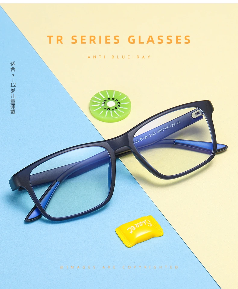 Квадратные детские очки конфетных цветов, анти-синий светильник, оп...