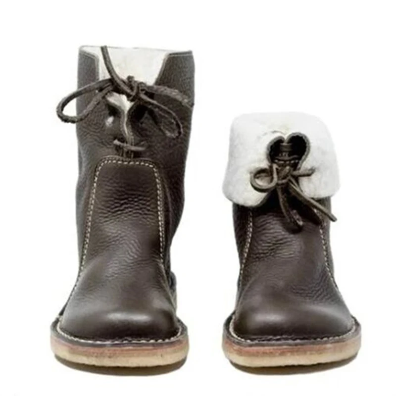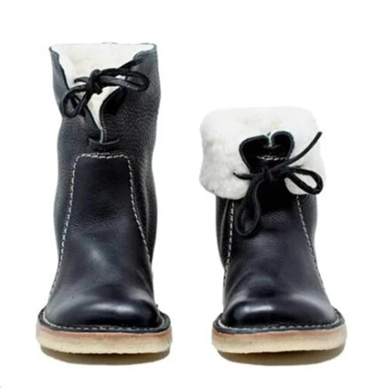 Женские повседневные теплые зимние ботинки на шнуровке из искусственной кожи с флисовой подкладкой на низком каблуке женская зимняя обувь TC21