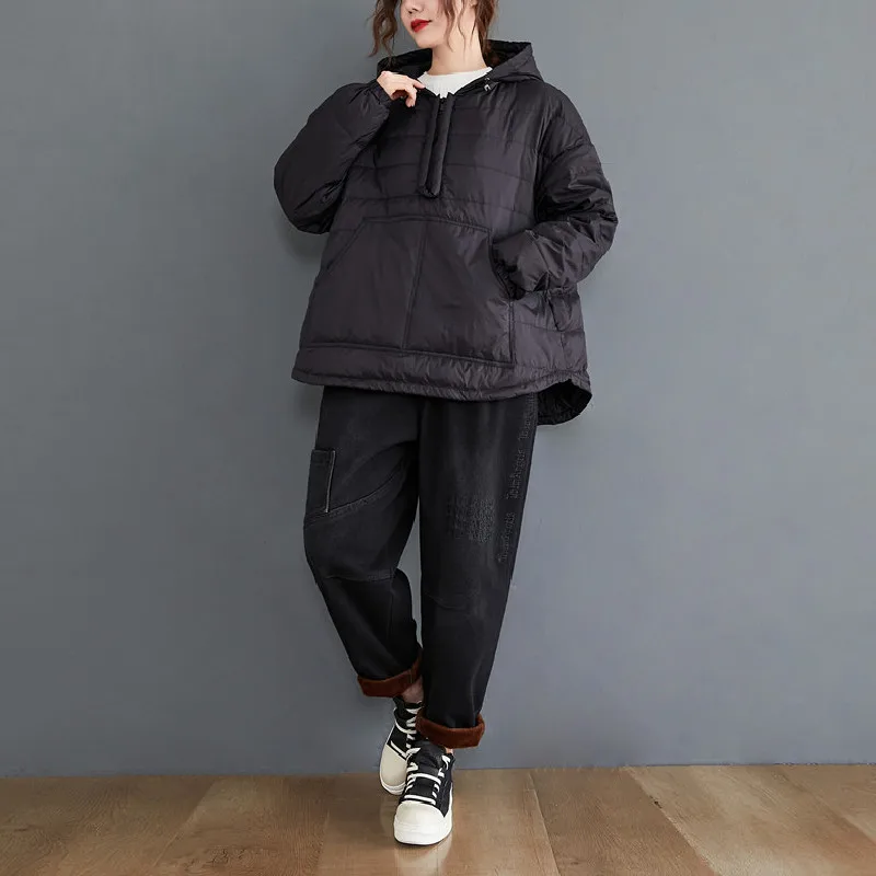 Женская хлопковая куртка с капюшоном, Повседневная Свободная верхняя одежда, осень-зима, размера плюс