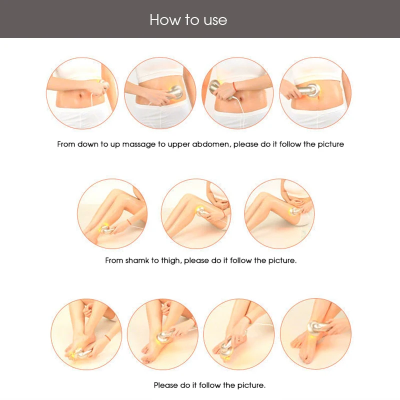 Лечение всего тела: 1. Массажные ручки 2. Массаж талии и живота 3. Массаж бедер 4. Массаж ног и ног 5. Массажное лицо Вы можете выбрать продукт в коробке или без коробки, если вы покупаете это для себя, вы можете выбрать товар без коробки, потому что он будет дешевле, но не волнуйтесь, мы также упакуем его очень осторожно, чтобы предотвратить поломки, Если вы покупаете это в качестве подарка или вы продавец и хотите продать этот продукт, мы советуем вам выбрать продукт в оригинальной коробке.