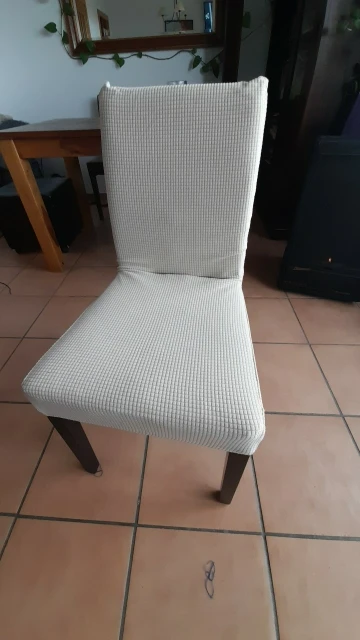 Хорошее качество и хорошо сидит со стульями, просто немного пахнет даже после стирки.