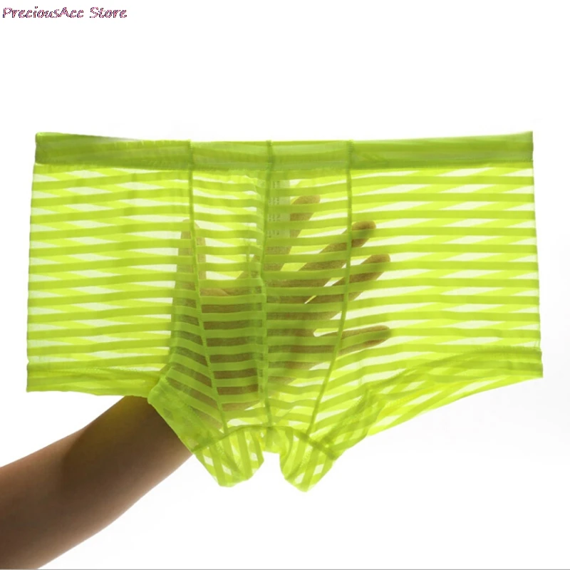 Трусы-боксеры мужские в полоску, сетчатые прозрачные ультратонкие дышащие, с низкой талией, из вискозы
