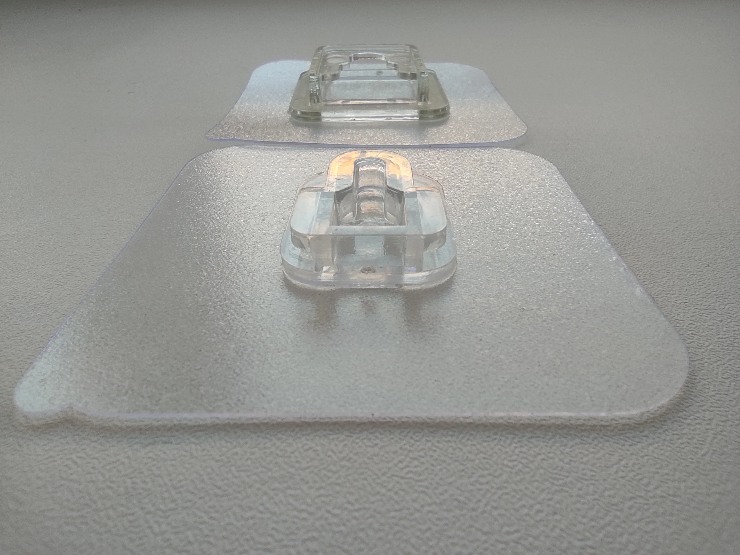 Хороший крепёж, пришёл вместе с другими заказами. Повесила на него сетевой фильтр и универсальный пульт (и то и другое относительно легкое). Единственный минус - один пришёл не квадратный, а обрезанный, прям по диагонали, но учитывая, что основа бесцветная - не критично.