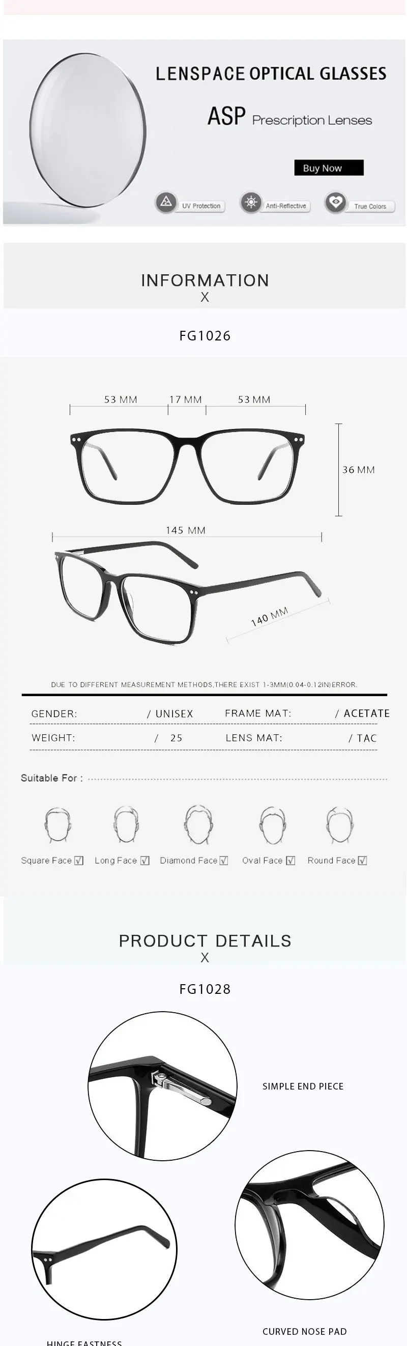 Солнцезащитные очки Lenspace поляризационные для мужчин и женщин, с магнитной застежкой, из ацетата, в квадратной оправе, для близорукости