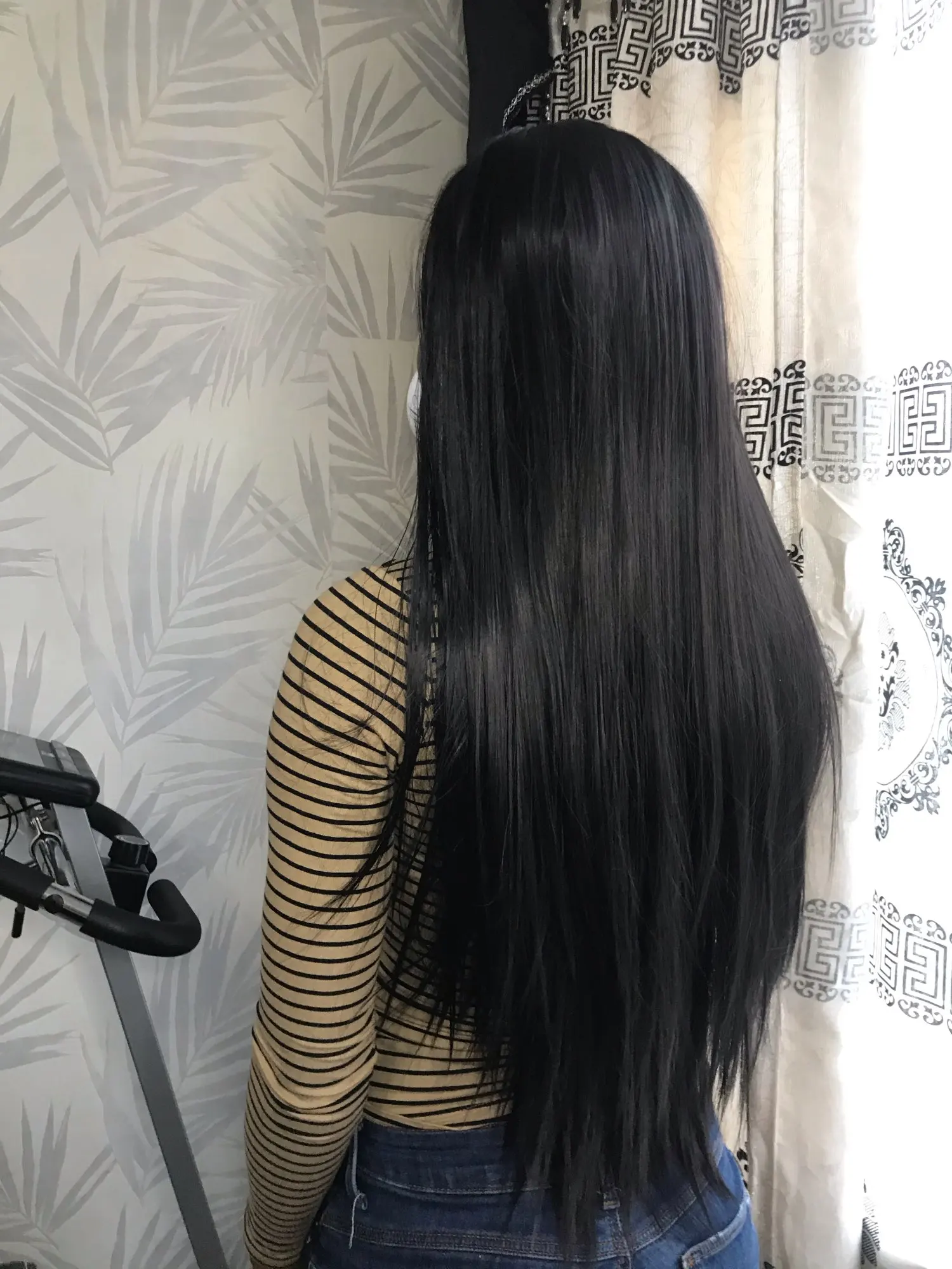beautiful hair, stays straight and very sleek.