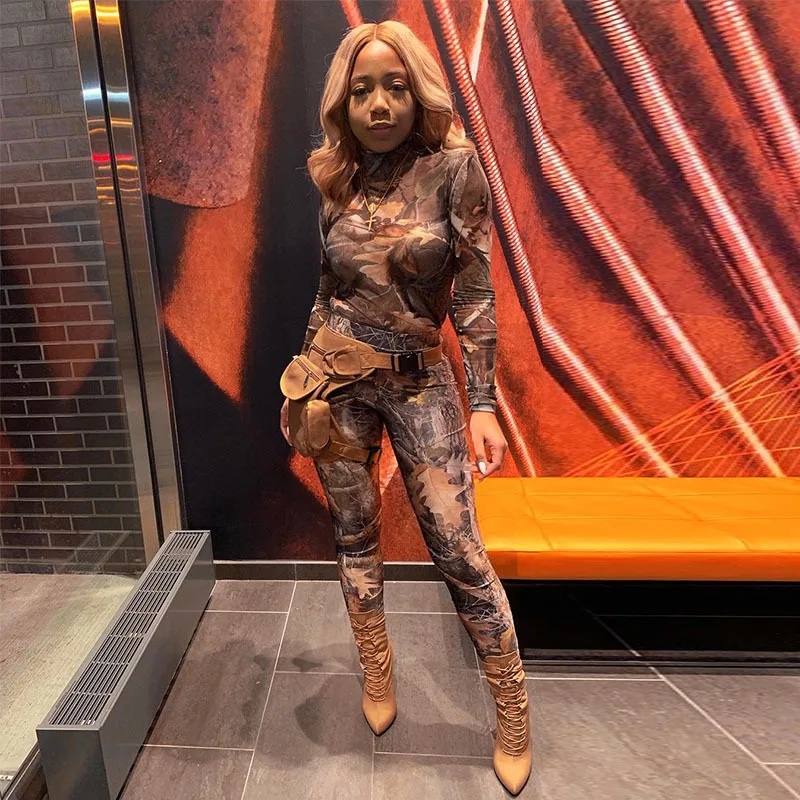 Женский комбинезон с длинным рукавом, боди и брюки с эстетическим принтом, комплект из 2 предметов