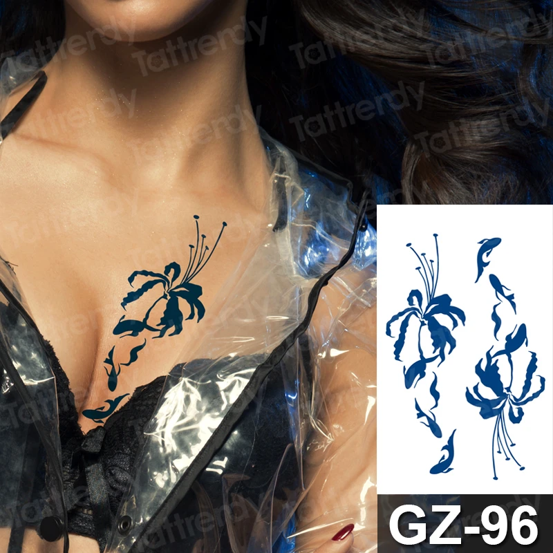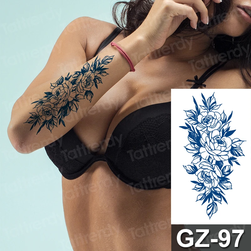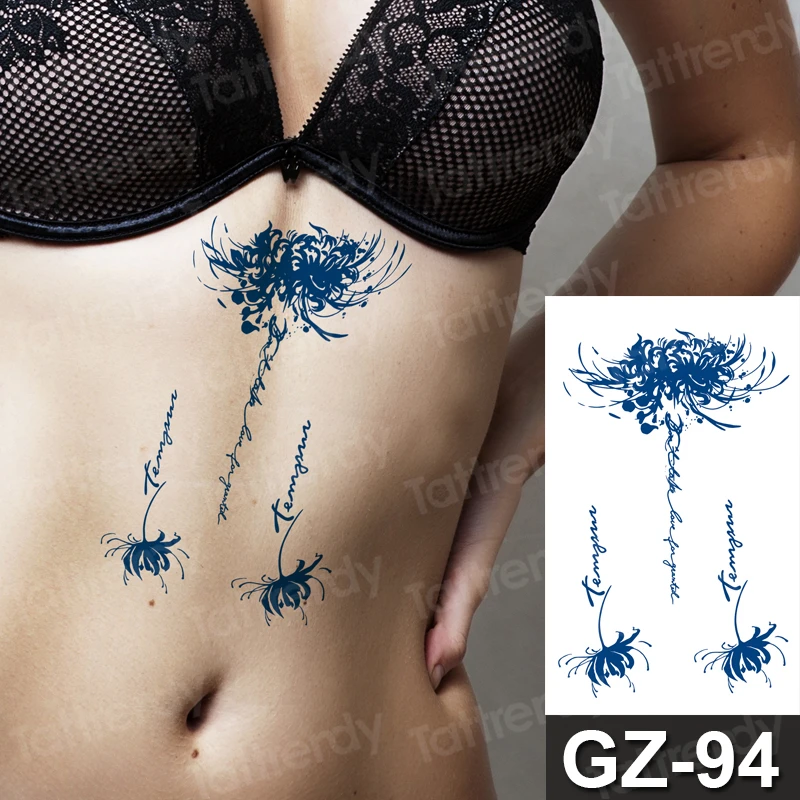 Синий хиган цветок сок татуировки долговечный водонепроницаемые штаны с фальш-вставкой для боди-арта ручной тату-Скорпион хны розовая Индия тату эскиз