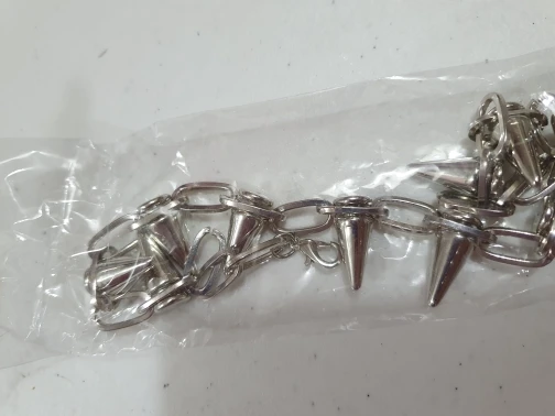 как на картинке. Шипы ложаться вдоль кожи либо вверх либо вниз, чтобы их поставить вертикально надо чтобы цепочка была в определённом положении
