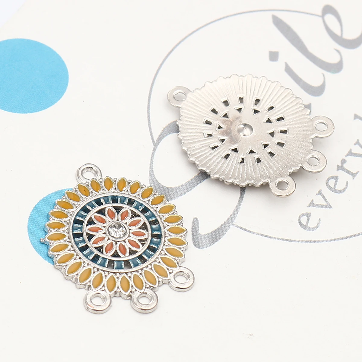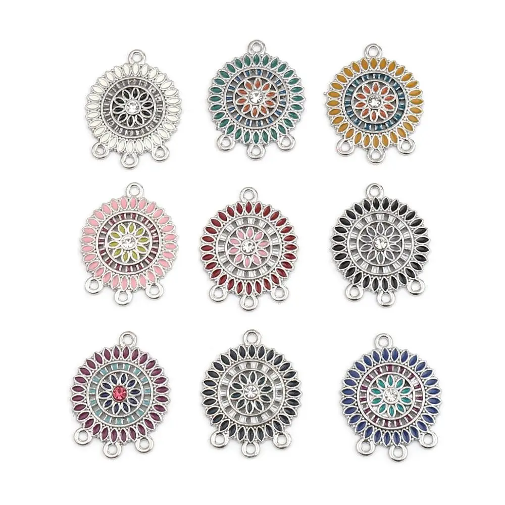 В комплексе 8seasons ботильоны в этническом стиле на Буддизм Мандала разъемы круглые подвески из серебра Многоцветный Эмаль Стразы DIY Jewwlry,10 шт.