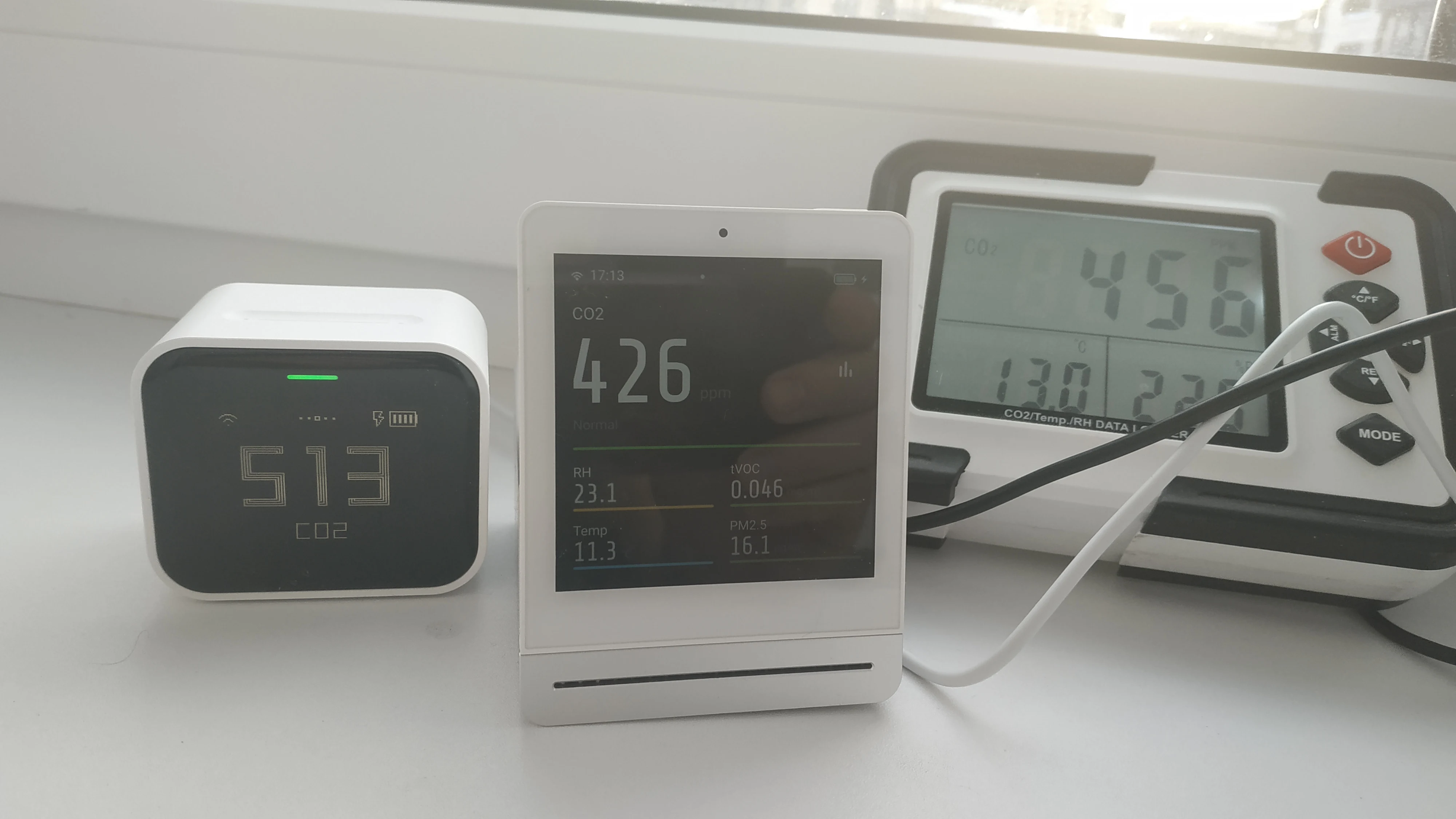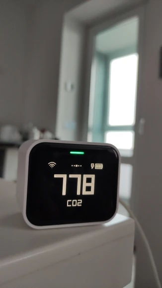 Неимоверно долгая доставка! 113 дней!! Наверно ездовыми собаками было бы быстрее. Сам прибор компактен. К Mi Home подключился сразу. Информация по СО²: фото на улице и в картире. Вентилятор забора воздуха практически не слышен. Только если поднести к уху.