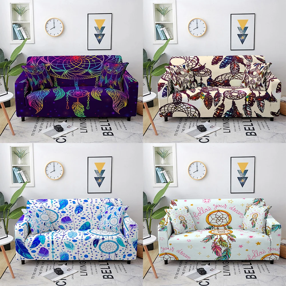Современный эластичный чехол в виде Ловец снов, чехол на диван с принтом для гостиной, чехол для стула L-образной формы, чехол на 1234-местное кресло