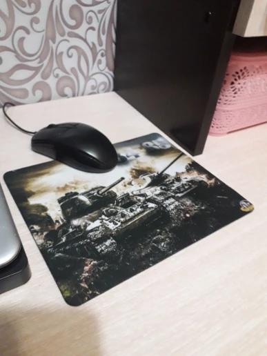 Нормальный ковер, на столе лежит хорошо, не сдвигается, мышь скользит нормально. Поверхность коврика похожа на ткань.