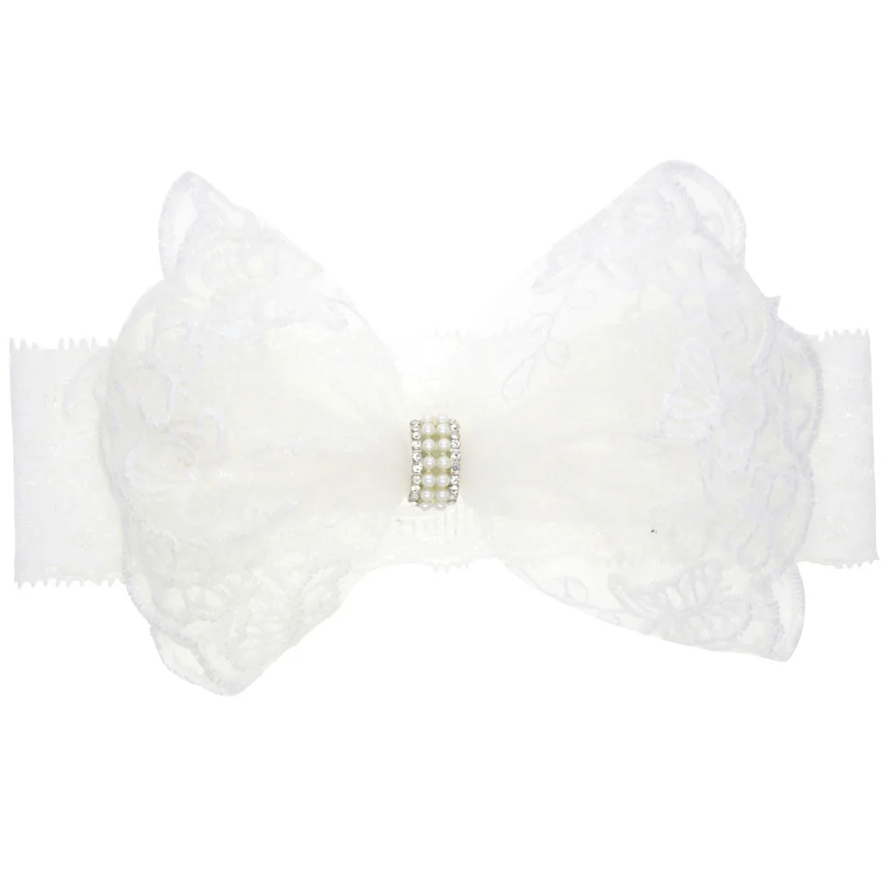 Повязка на голову для девочек Withe, кружевная, со стразами, эласти...