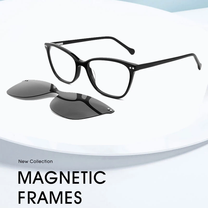 Lenspace прямоугольные поляроидные очки Для женщин с защитой от УФ-Магнитные очки для близорукости FG1032 клип на солнцезащитные очки ацетатная Оправа очков бокалы