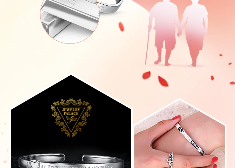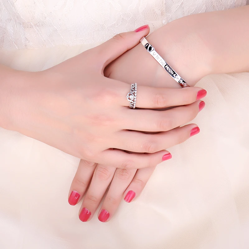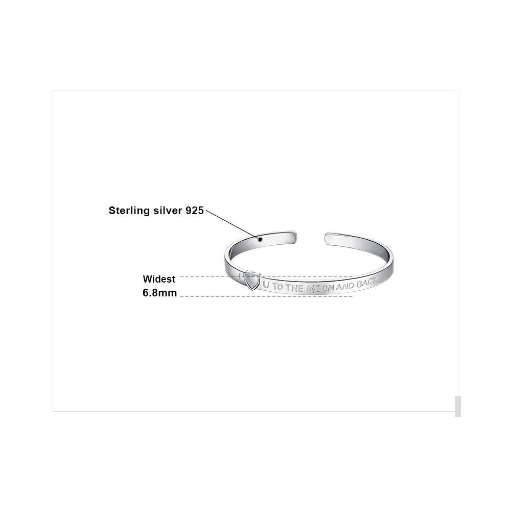Стройный Серебро Браслет-манжета с гравировкой любовное сообщение "I love you to the moonAnd back ", Сентиментальный подарок для любимого человека.