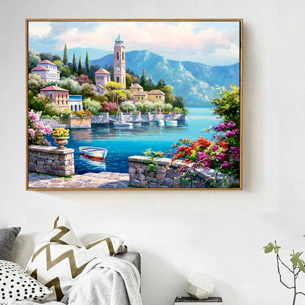 Evershine 5D DIY Алмазная вышивка городок картины стразами алмазная мозаика Приморский алмазная картина пейзаж вышивка крестиком Подарок домашнего декора