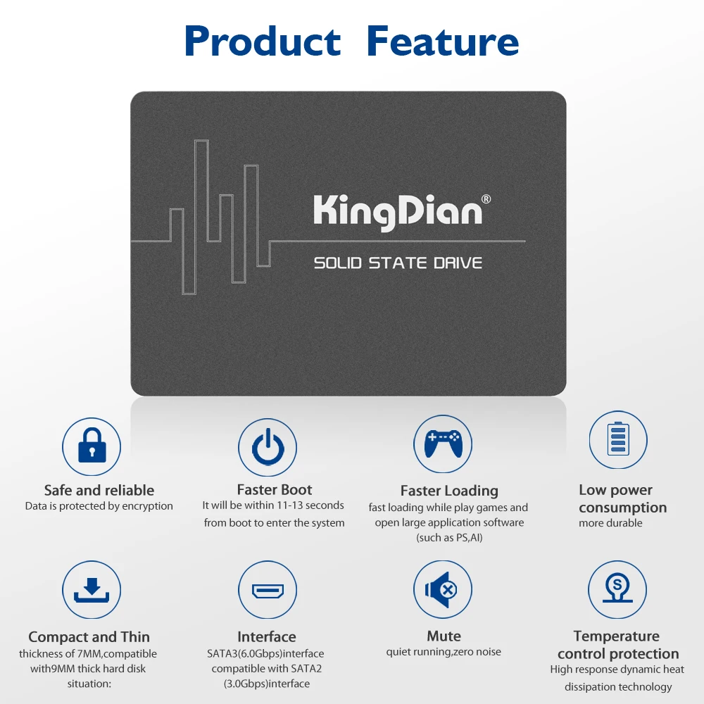 Внутренний твердотельный накопитель KingDian SSD 128 ГБ, 256 ГБ, 512 ГБ, 120 ГБ, 240 ГБ, 1 ТБ, 480 дюйма, SATA3, 2 ТБ дюйма, для ноутбуков, ПК