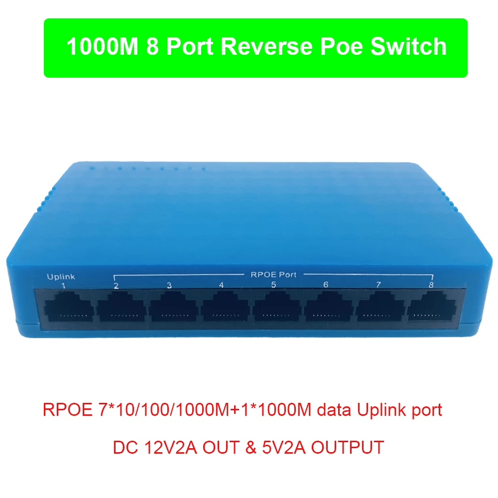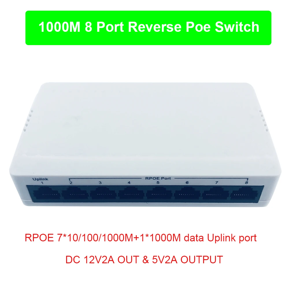 1000 м 8 портов обратное POE Питание переключатель 7*101001000 м + 1*1000 м восходящий канал Выход постоянного тока 5 в 2 А и 12 В 2 А порт поддержки RPOE VLAN