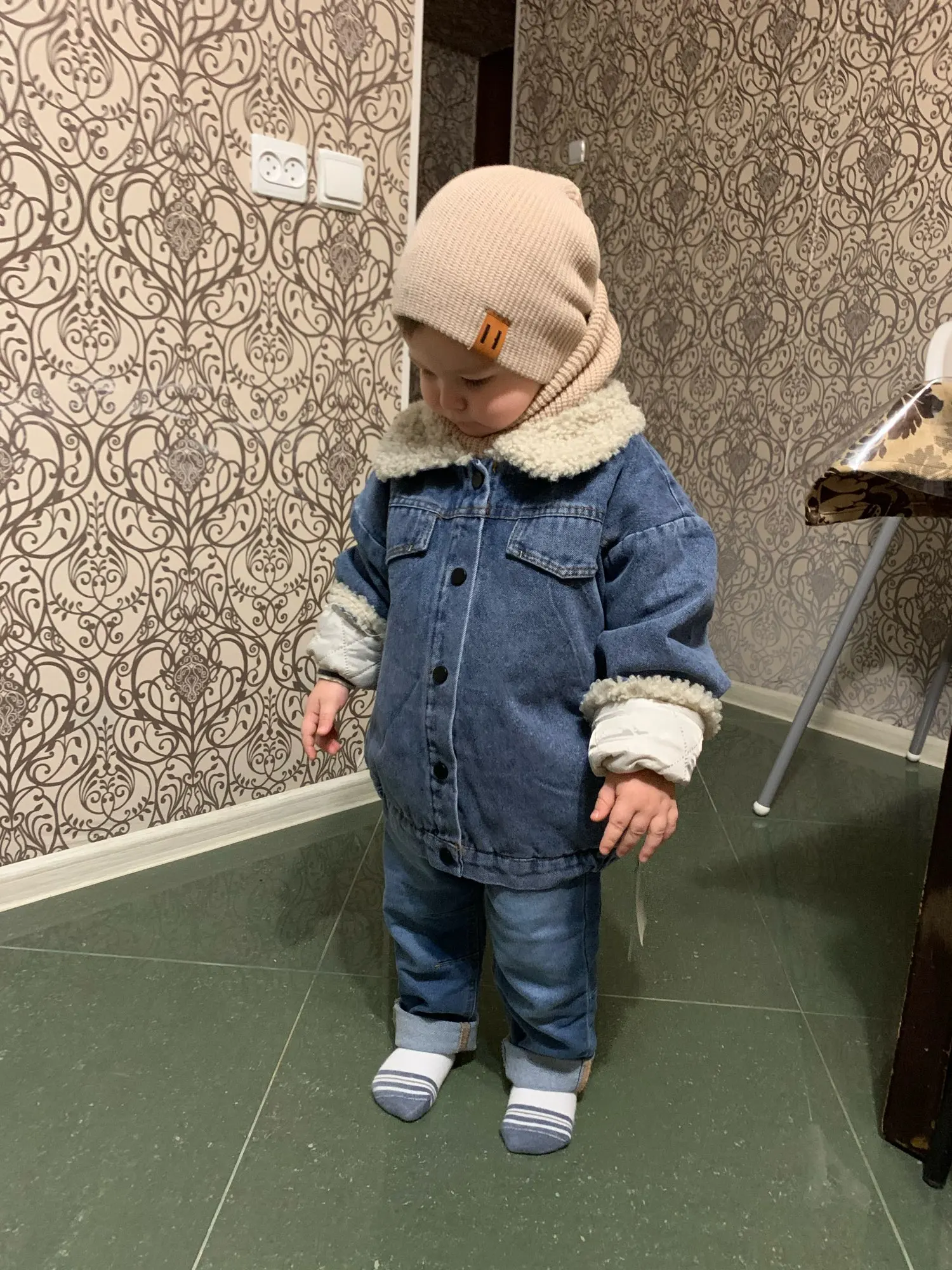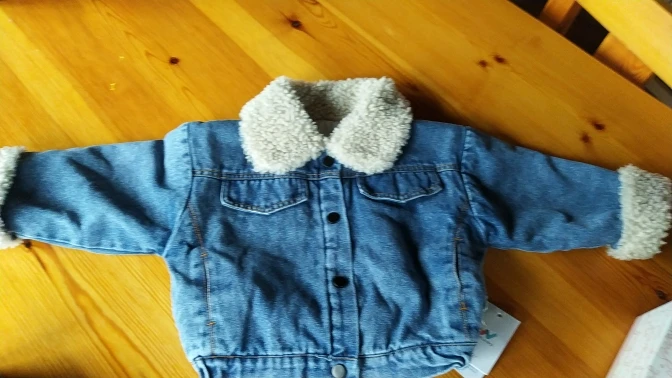 деним норм. внутри подклад походу синтетический, стирайте с кондиционером-электризоваться не будет. типа мех-ооочень мягкий, у нас рост примерно 94, великовата на размер приблизительно, но она оверсайз, так что смотрится отлично при этом. карманы-обманки, на верхних стояли пластиковые замки , на которые обычно вешают этикетки-только эти меньше. по ряду пуговиц в самом низу такая же штукенция-чтобы куртка не распахивалась. сразу видно , что новая. из вообще много по всей куртке. единственное, из-за них слегка пробили подкладку, ногтем сотрите, нитки на место встанут. всем приятных покупок.