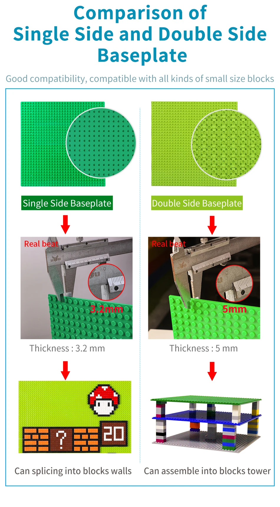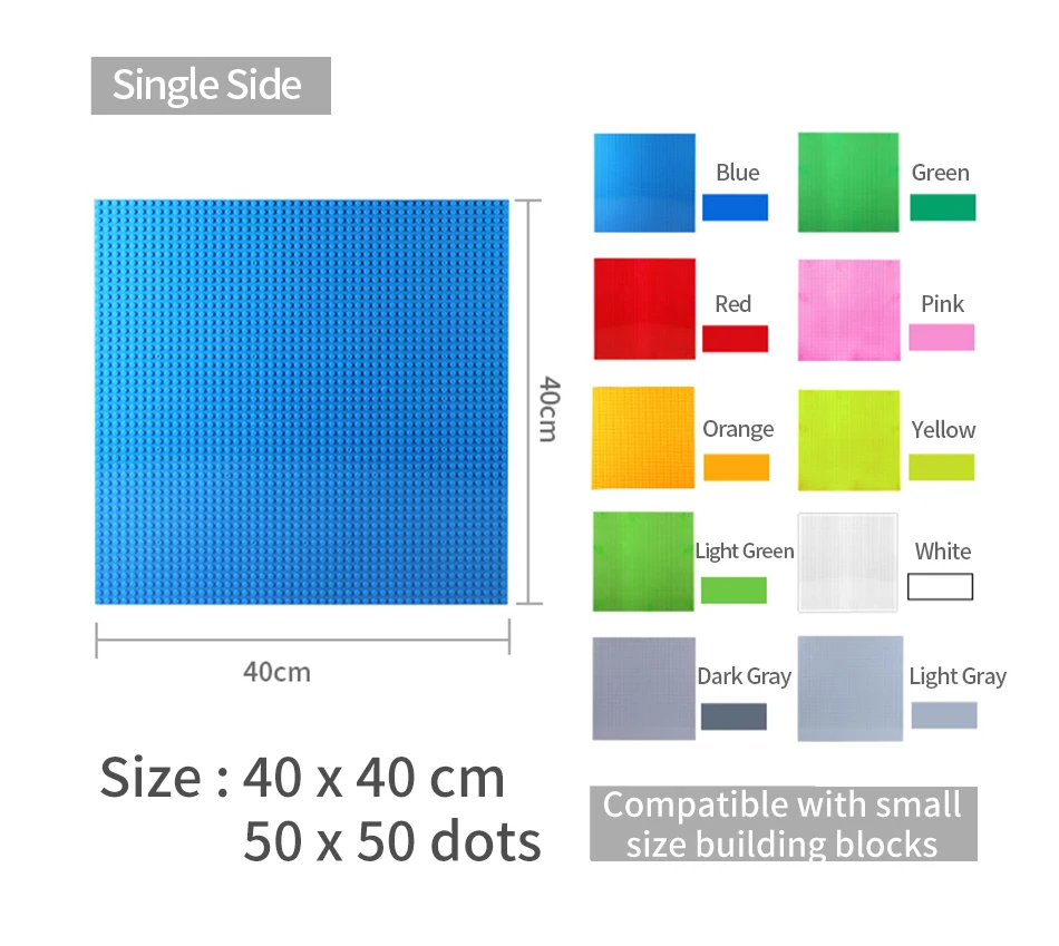 Совместимость со всеми основными брендами строительных кирпичей-Совместимость с кирпичами LEGOs. Наши опорные плиты на 100% совместимы и доказаны, что работают с другими фирменными строительными кирпичами.Самая сильная, самая прочная и долговечная опорная пластина, когда-либо изготовленная, прослужит всю жизнь! Базовая пластина высшего качества, которая имеет двойную толщину и в два раза прочнее, чем название бренда! Мы гарантируем, что вы почувствуете разницу в качестве.Самая популярная базовая пластина, используемая для создания игровых столов и стен, потому что:[1] края соединяются между собой[2] квадратные углы идеально сочетаются без зазоров; Предпочтительно для плинтусов с закругленными углами[3] легко режет любой размер. Отличное дополнение к школьной программе STEM.Больше воспроизведения и веселья: возможности безграничны с этими классическими строительными пластинами. Дети будут строить, играть и отображать все свои любимые творения с этими аксессуарамиКлассические аксессуары для квадратной опорной плиты:50X50 шпильки или (40 см) x (40 см) и идеально подходят для детей и взрослых всех возрастов