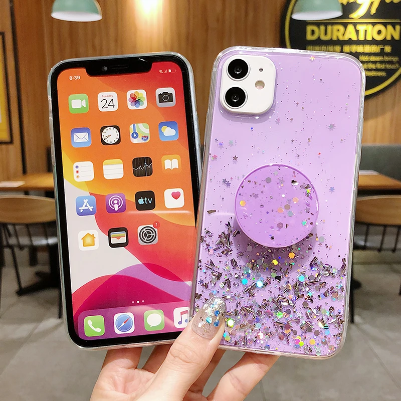 Силиконовый чехол для Xiaomi Mi 10 CC9 Pro Poco X2 Redmi Note 9 8 7 Pro 8T K30 10X 9A 9C с блестками и подставкой