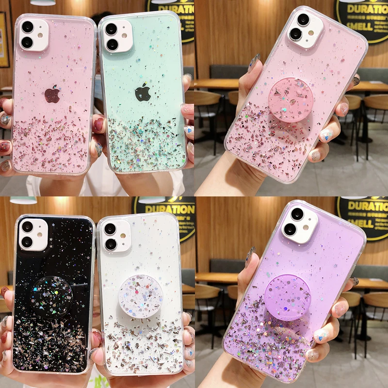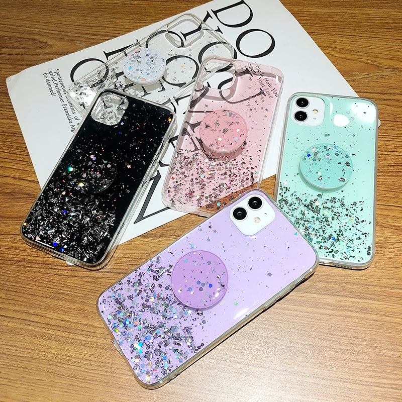 Блестящий силиконовый чехол со звездой для Xiaomi Mi 10 CC9 Pro Poco X2 Redmi Note 9 8 7 Pro 8T K30 10X 9A 9C с подставкой и блестящим чехлом