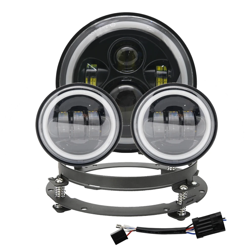 7 "черный светодиодный проектор головной светильник 4,5" Противотуманные фары ближнего света светильник для Harley Touring Electra Road King ночной поезд Softail Bad Boy