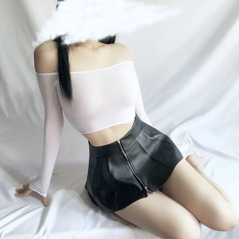 Винтажные женские юбки А-силуэта с высокой талией в стиле панк, плиссированная черная гранж-юбка Egirl, Клубная микро мини-юбка из искусственной кожи на молнии с открытым верхом