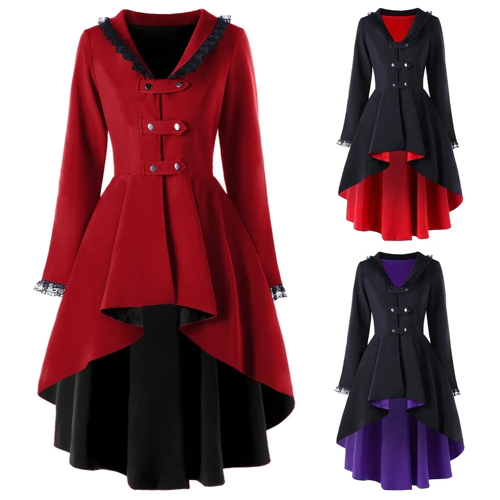 Женское асимметричное кружевное пальто, готическое облегающее пальт...