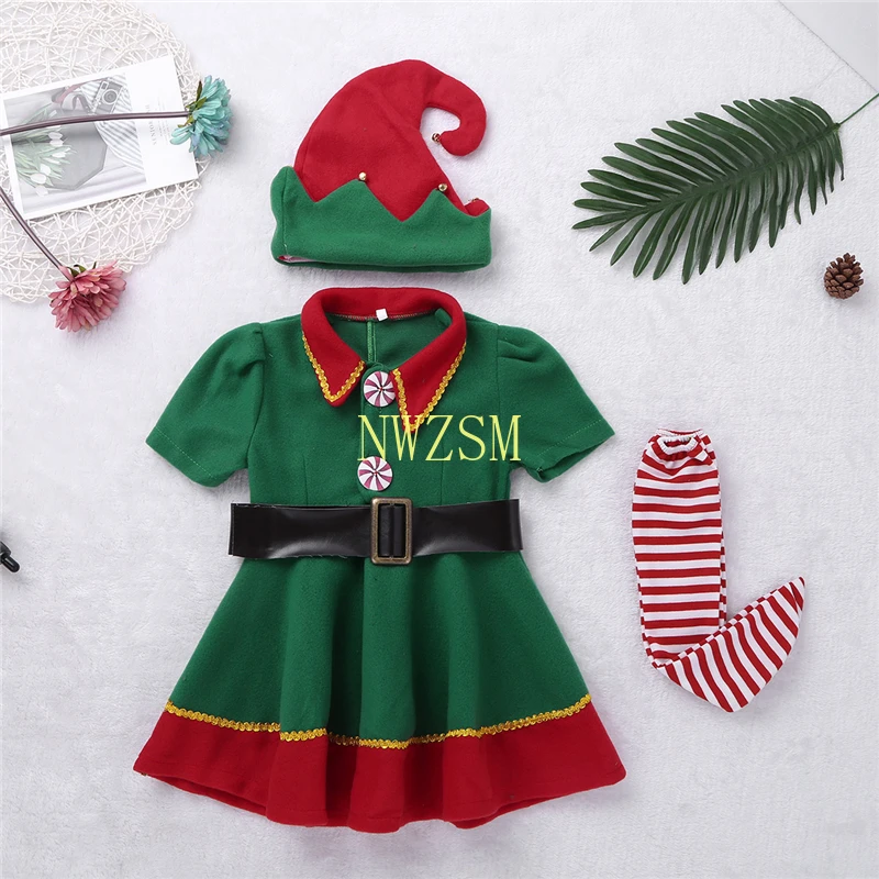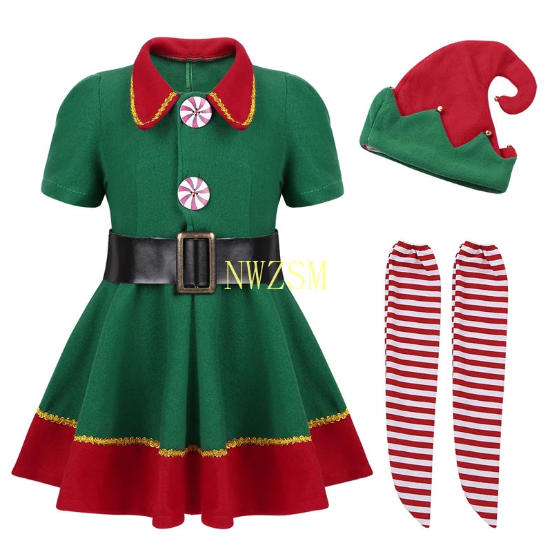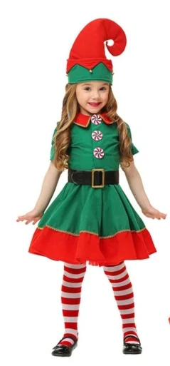 2020 Рождественский костюм зеленого эльфа для девочек праздничное платье Санта Клауса для девочек новогодняя Детская одежда нарядное платье рождевечерние чное платье