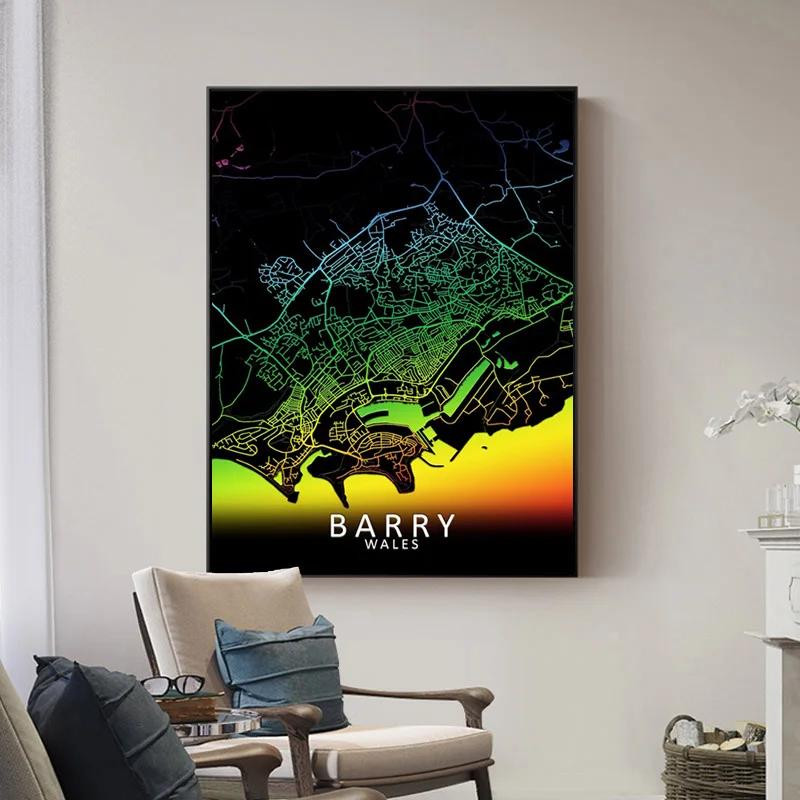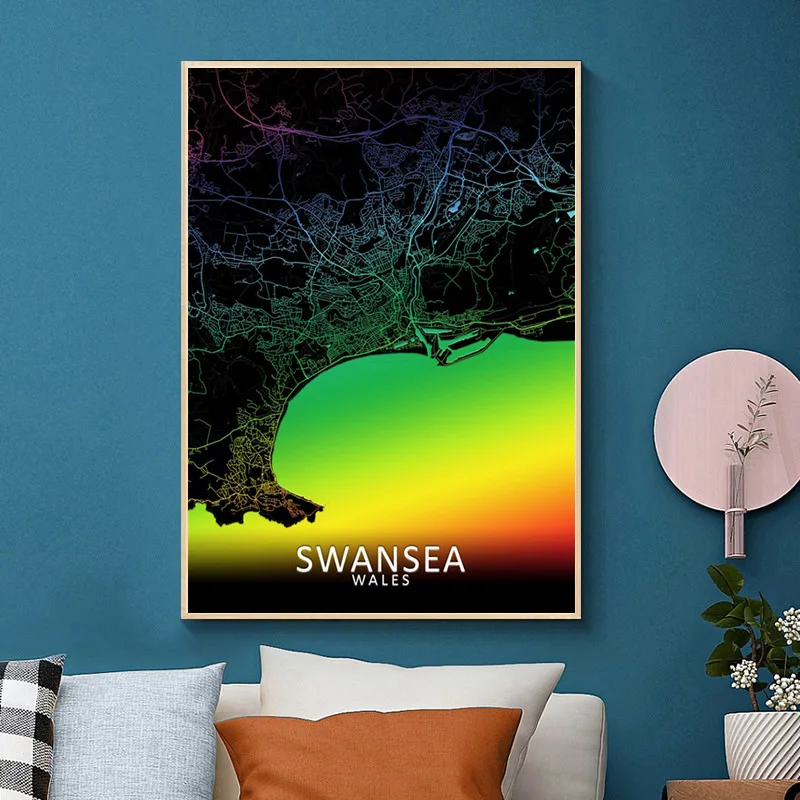 Алмазная живопись сделай сам с картой Великобритании и Уэльса, вышивка крестиком, красочная абстрактная городская вышивка, мозаика, настенное украшение