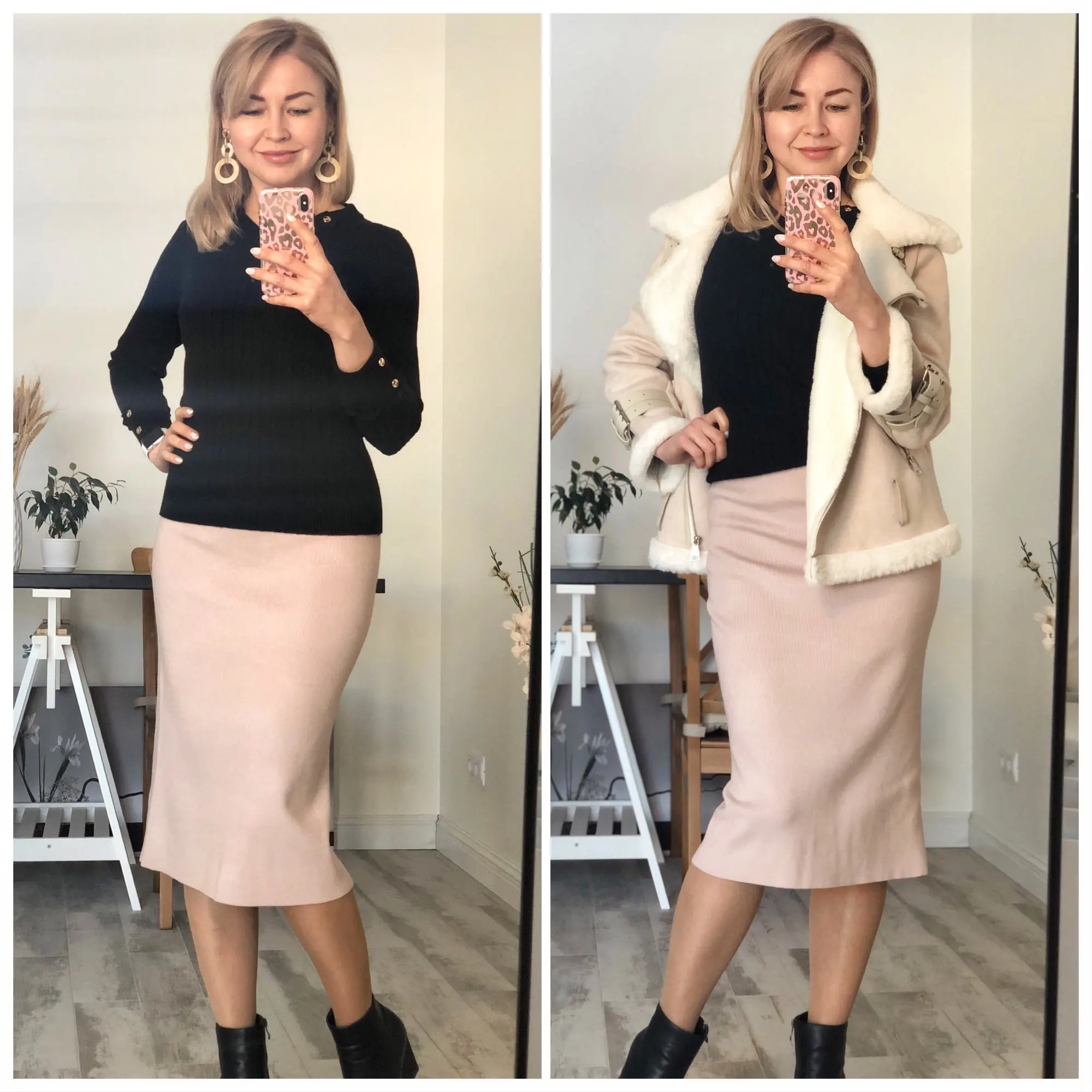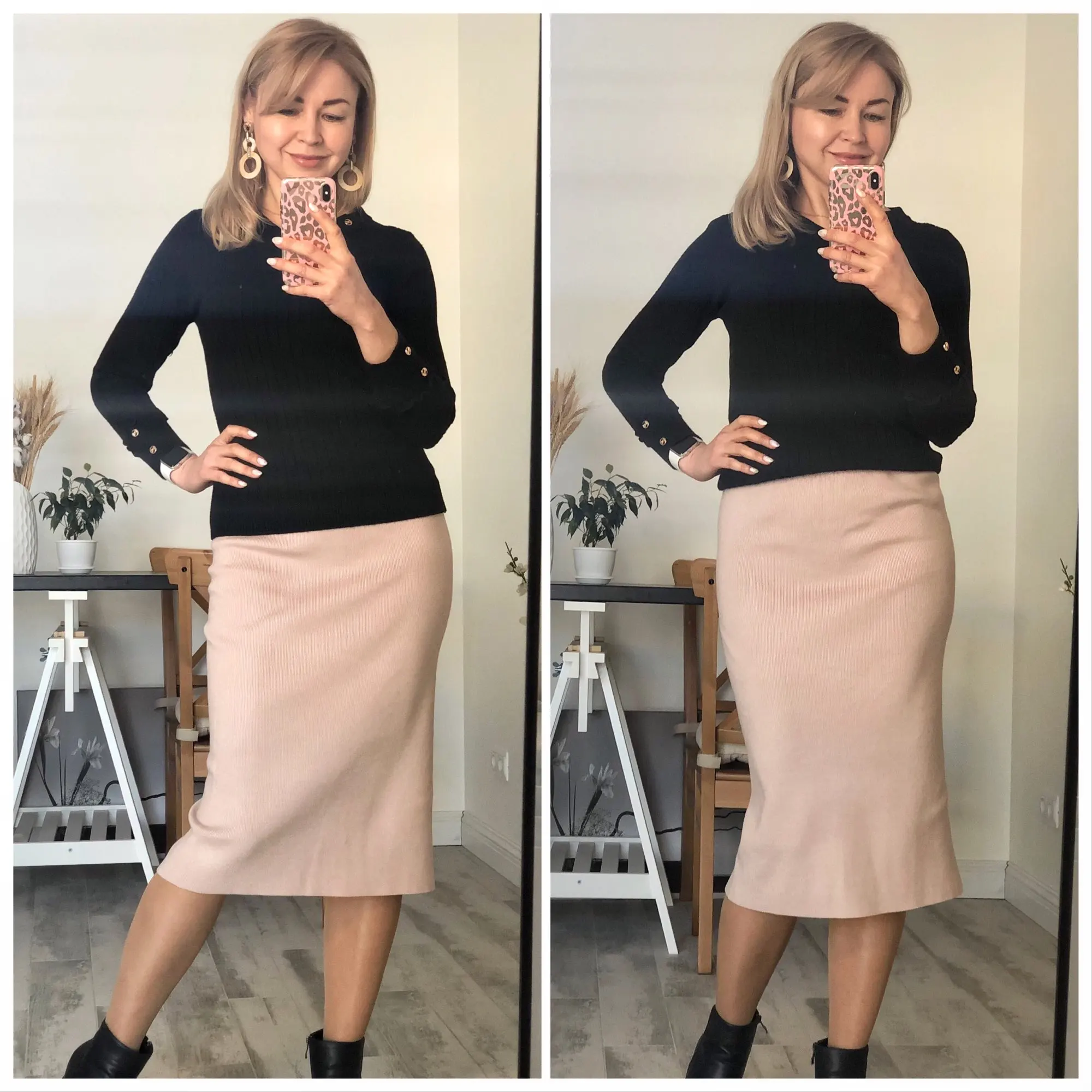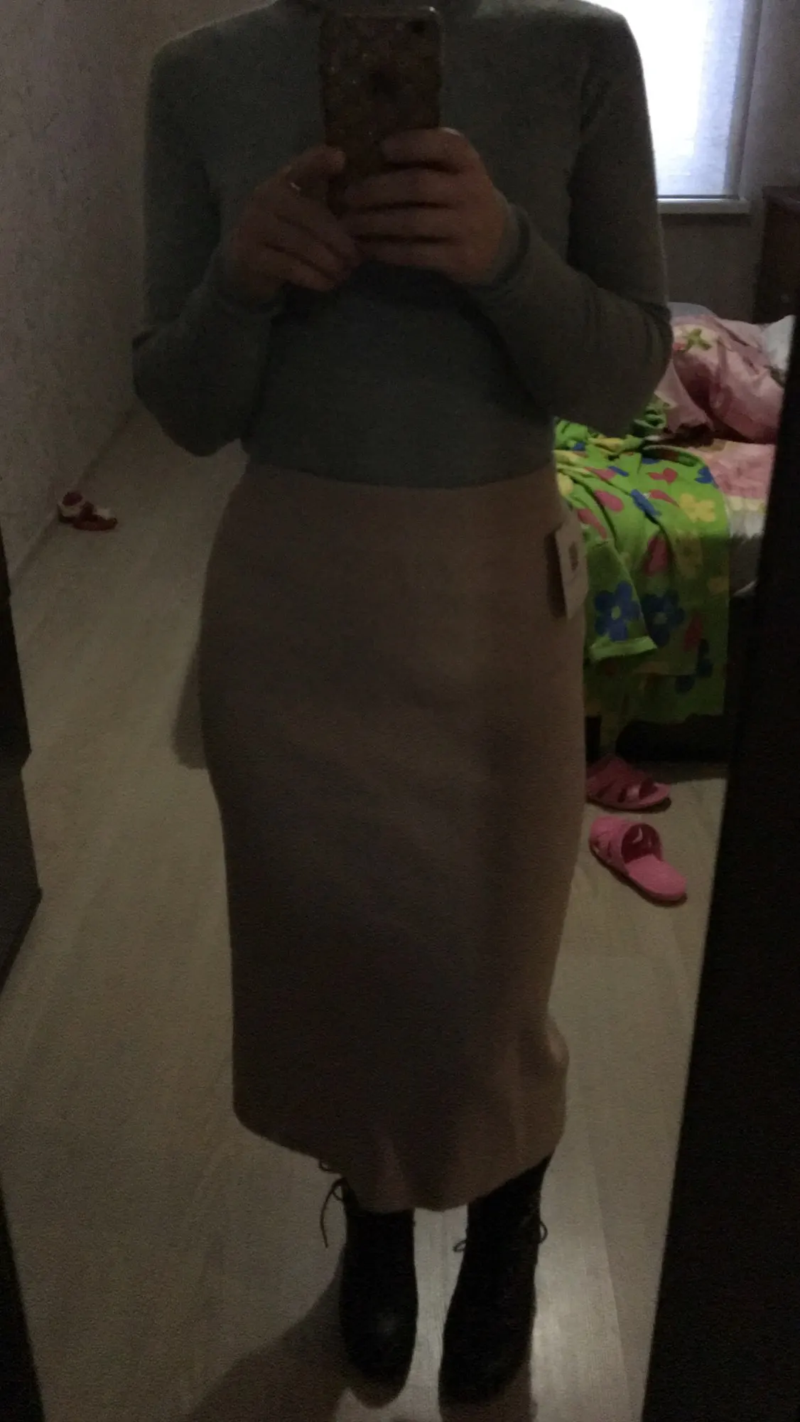 Мой Instagram aleksandraliexpress Трикотажная юбка с Али. Цена:1400₽ Юбка машинной вязки. Никакой информации о составе нет, но на ощупь кажется, что это нить из смеси акрила и хлопка, хотя скорее всего это чистая синтетика, но мягкая и приятная на ощупь. Пояс на удобной широкой резинке, которая отлично растягивается и не впивается в живот. За счёт этого можно регулировать длину юбки, поднимая выше на талию или спуская ниже к бёдрам. Сидит юбка классно отлично тенится. Мои параметры: Рост 157 обхват талии 77 обхват бедер 90 обхват груди 90. Взяла m Юбку я могу рекомендовать. Отличная,аккуратная, элегантная трикотажная юбка на высоких стройных девушек.