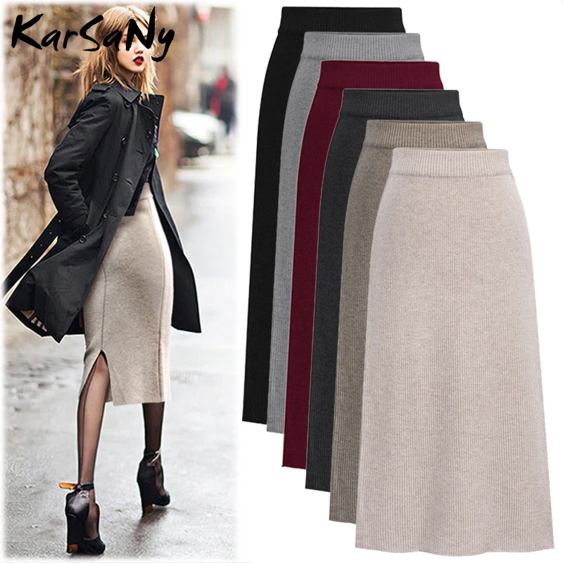 Юбка-карандаш женская вязаная, с высокой талией, батальных размеров, 6XL, Осень-зима